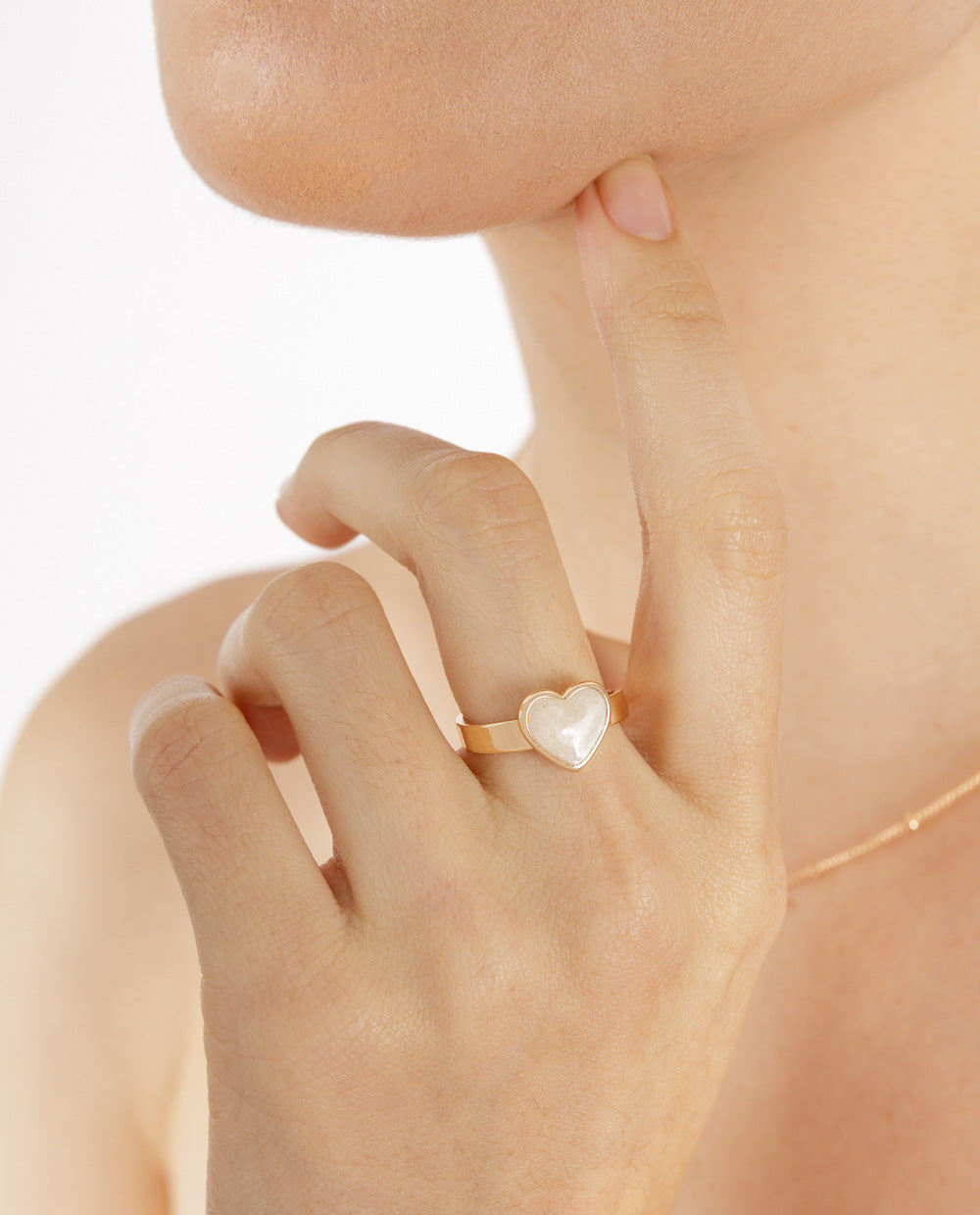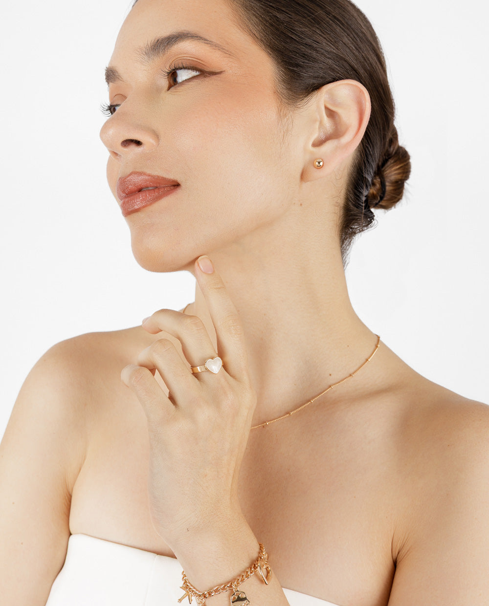 Anillo ajustable con diseño de corazón, bañado en oro para un brillo elegante y atemporal. Elaborado con materiales hipoalergénicos, es ideal para pieles sensibles. Un accesorio versátil que añade un toque romántico y sofisticado a tu look diario o de ocasión.