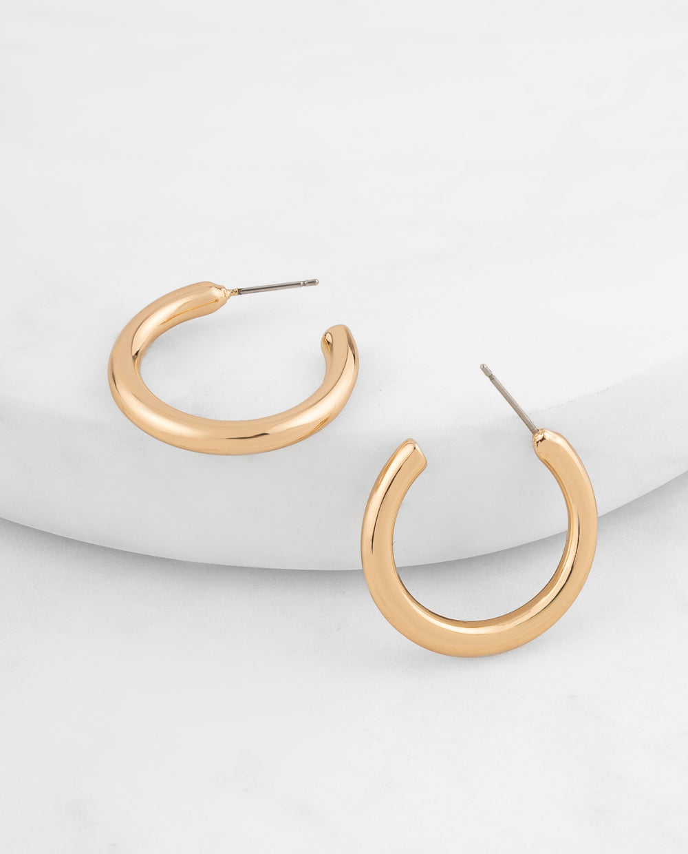 Aretes argolla dorados bañados en oro con acabado liso y brillante. Hipoalergénicos perfectos para pieles sensibles.