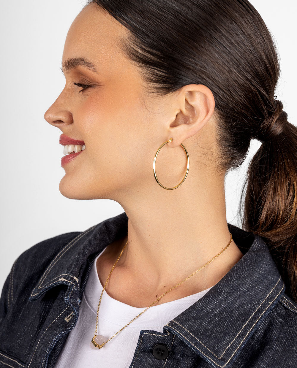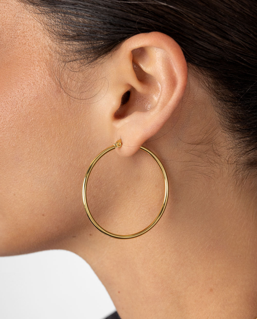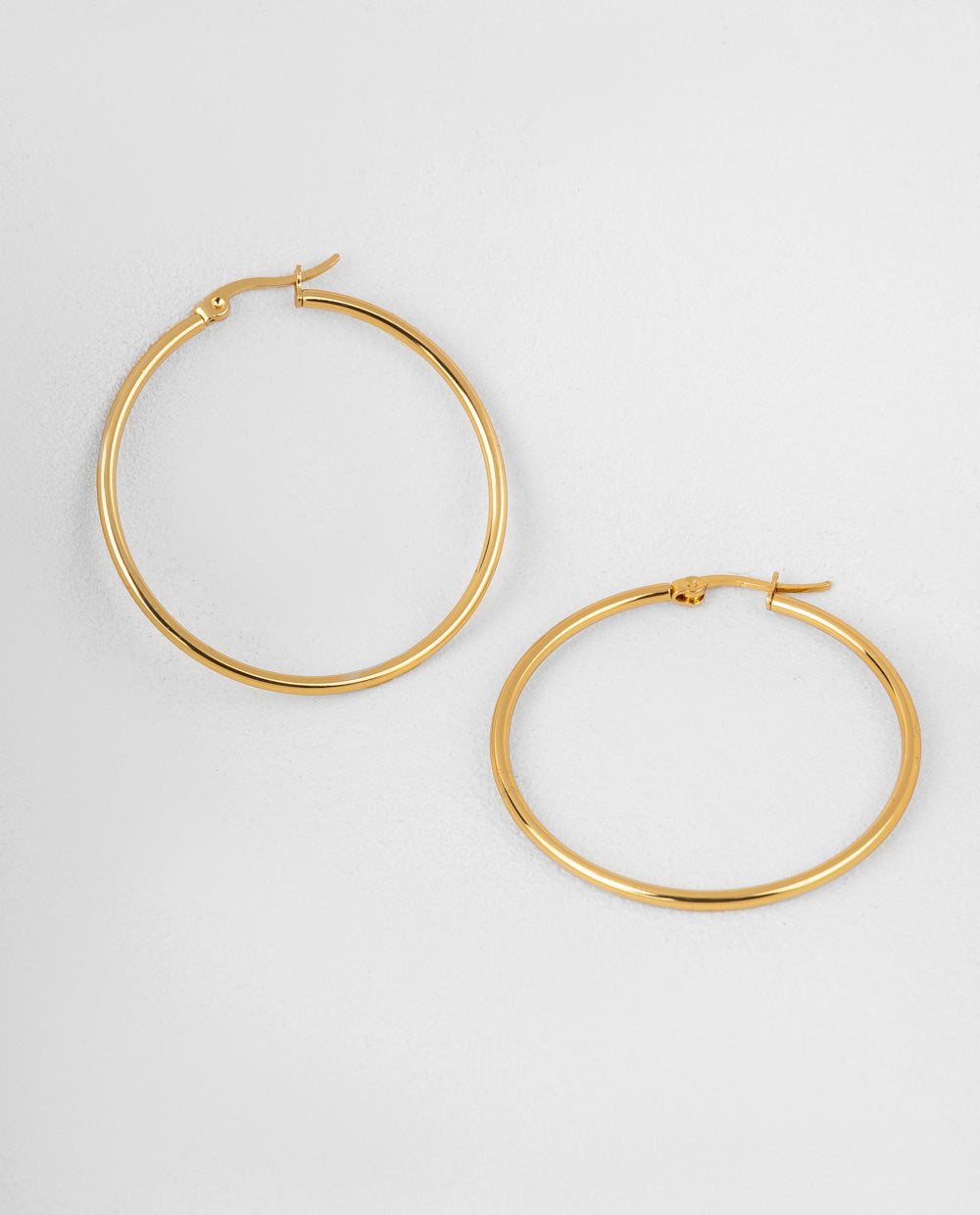 Estos aretes de argolla son un básico infaltable en tu joyero. Fabricados en acero inoxidable y bañados en oro, combinan resistencia con un acabado brillante y elegante. Su diseño clásico los hace perfectos para usar todos los días o complementar tus looks más sofisticados. Versátiles, livianos y atemporales.