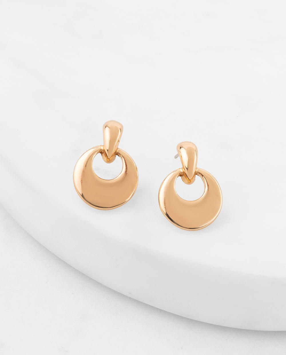 Aretes dorados con diseño circular minimalista, bañados en oro. Hipoalergénicos perfectos para pieles sensibles.