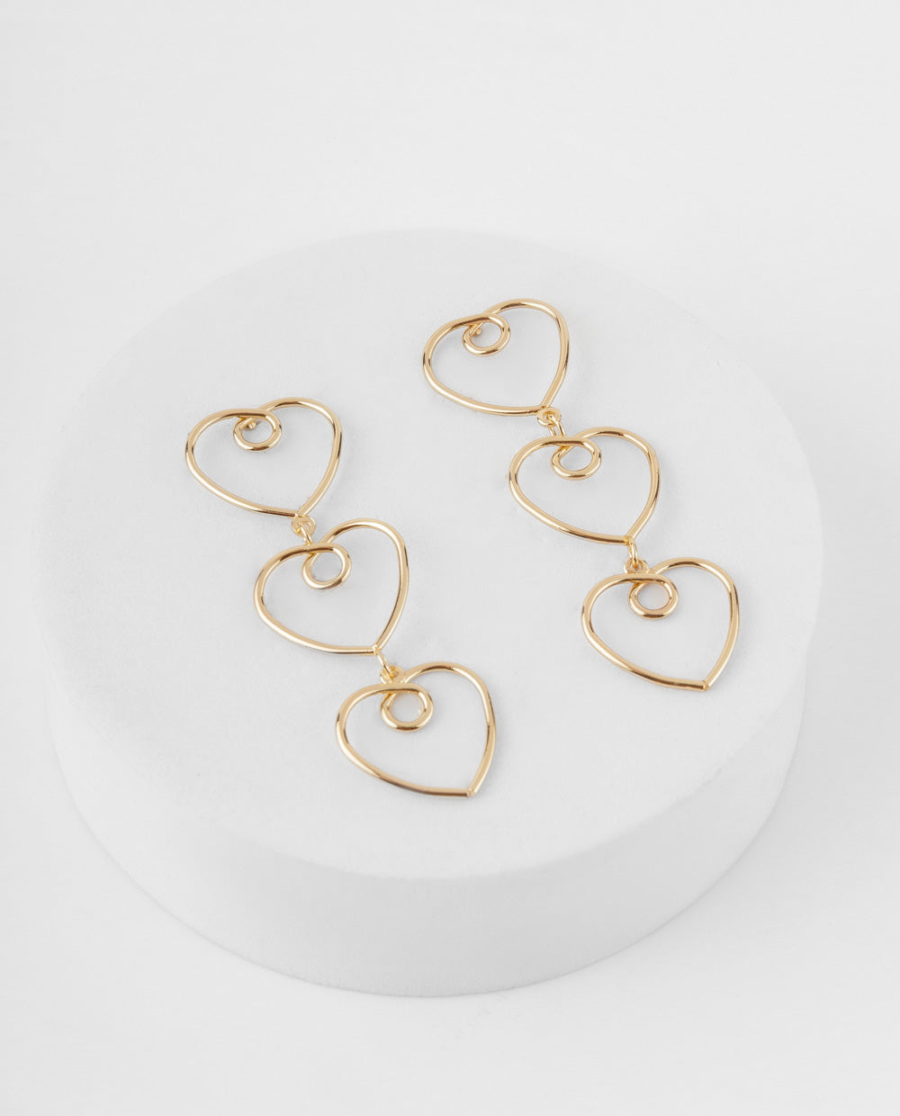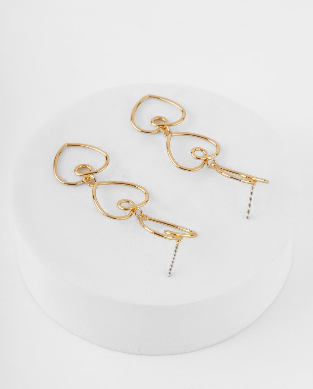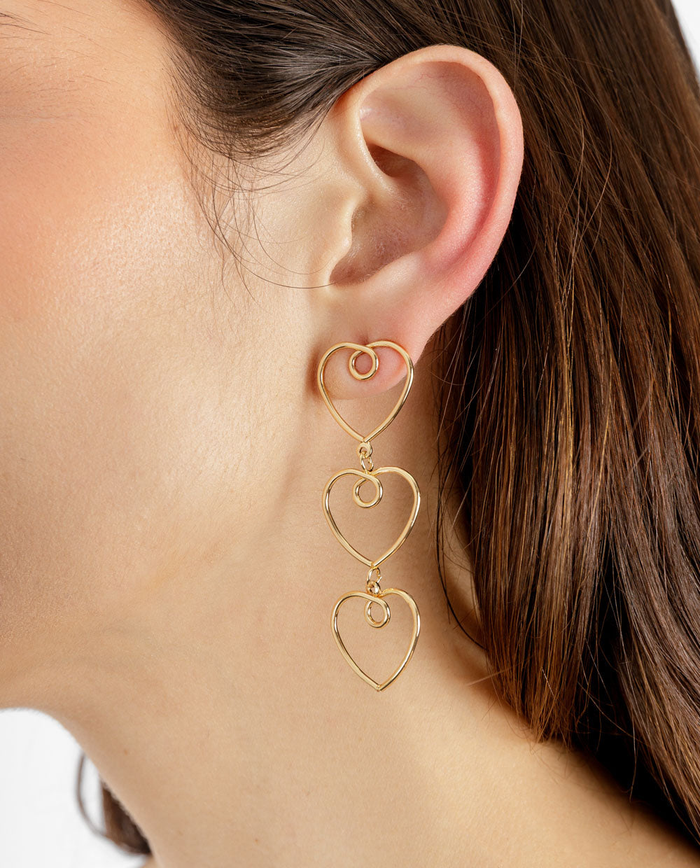Estos aretes colgantes dorados con diseño de corazones entrelazados aportan un estilo romántico y lleno de movimiento. Su diseño ligero y moderno es ideal para complementar vestidos frescos, blusas femeninas o looks casuales con esencia boho chic. Un accesorio versátil que suma brillo, delicadeza y personalidad a tu estilo primaveral.