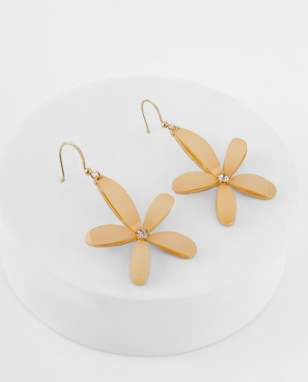 Aretes colgantes flor dorada con centro brillante