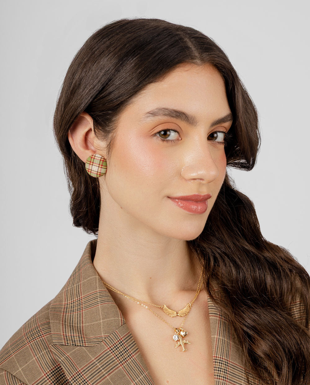 Un toque vintage que nunca falla 🍂 Estos aros con print escocés son ideales para darle personalidad a tus outfits de temporada. Llévalos con actitud y brilla 24/7, como solo una Sifrahmiga sabe hacerlo.