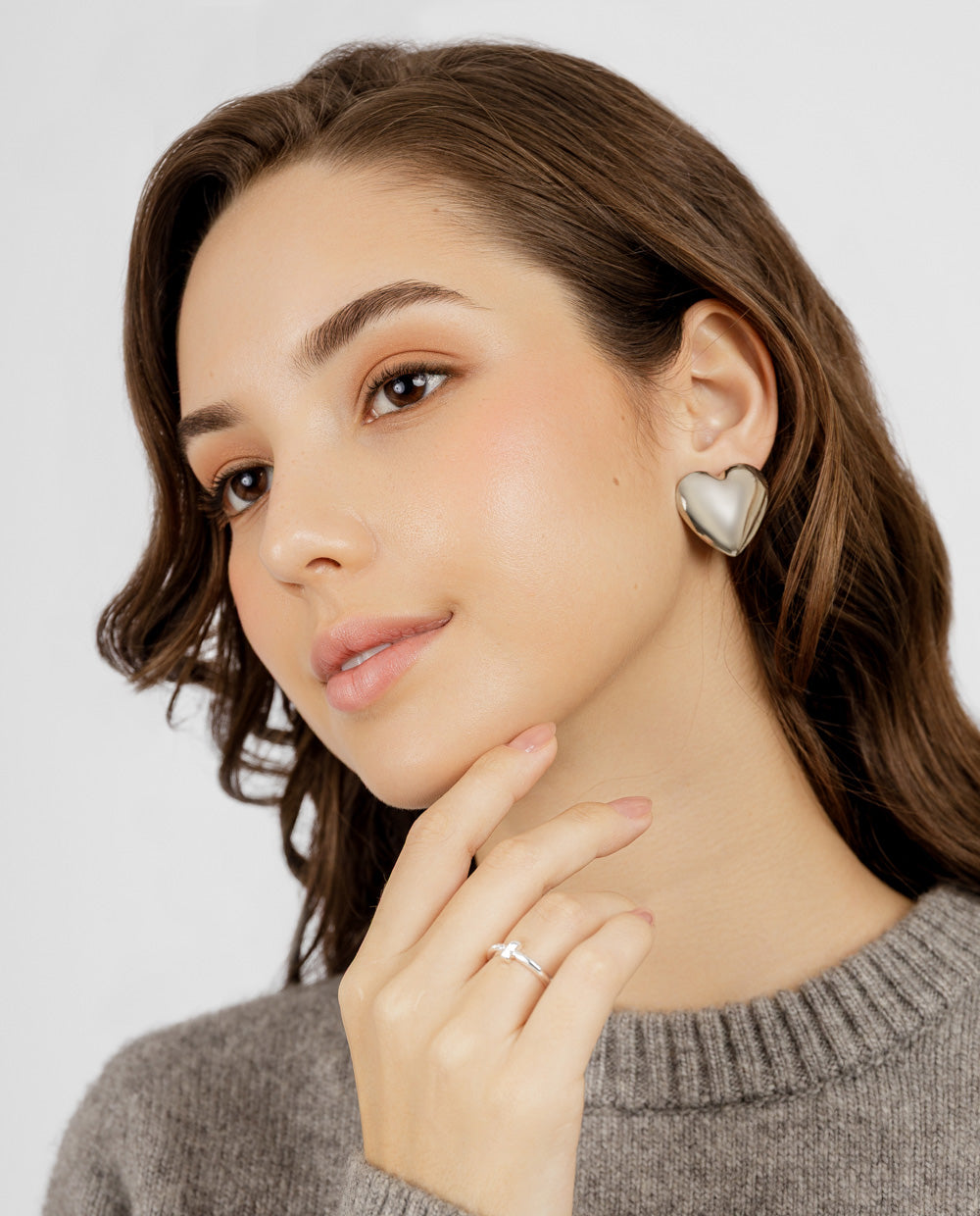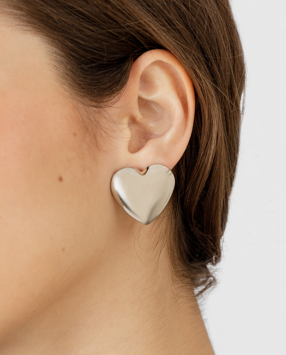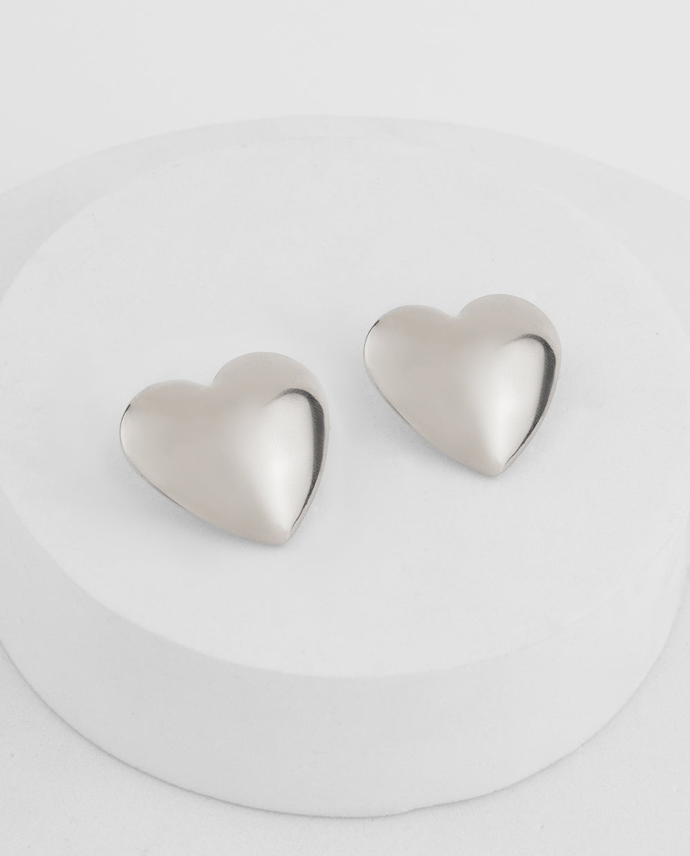 Aretes con diseño de corazón liso en tono plateado, ideales para darle un toque moderno y romántico a cualquier look. Su forma atemporal los convierte en ese básico que no puede faltar en tu joyero 💫. Combínalos con todo, todo el día.