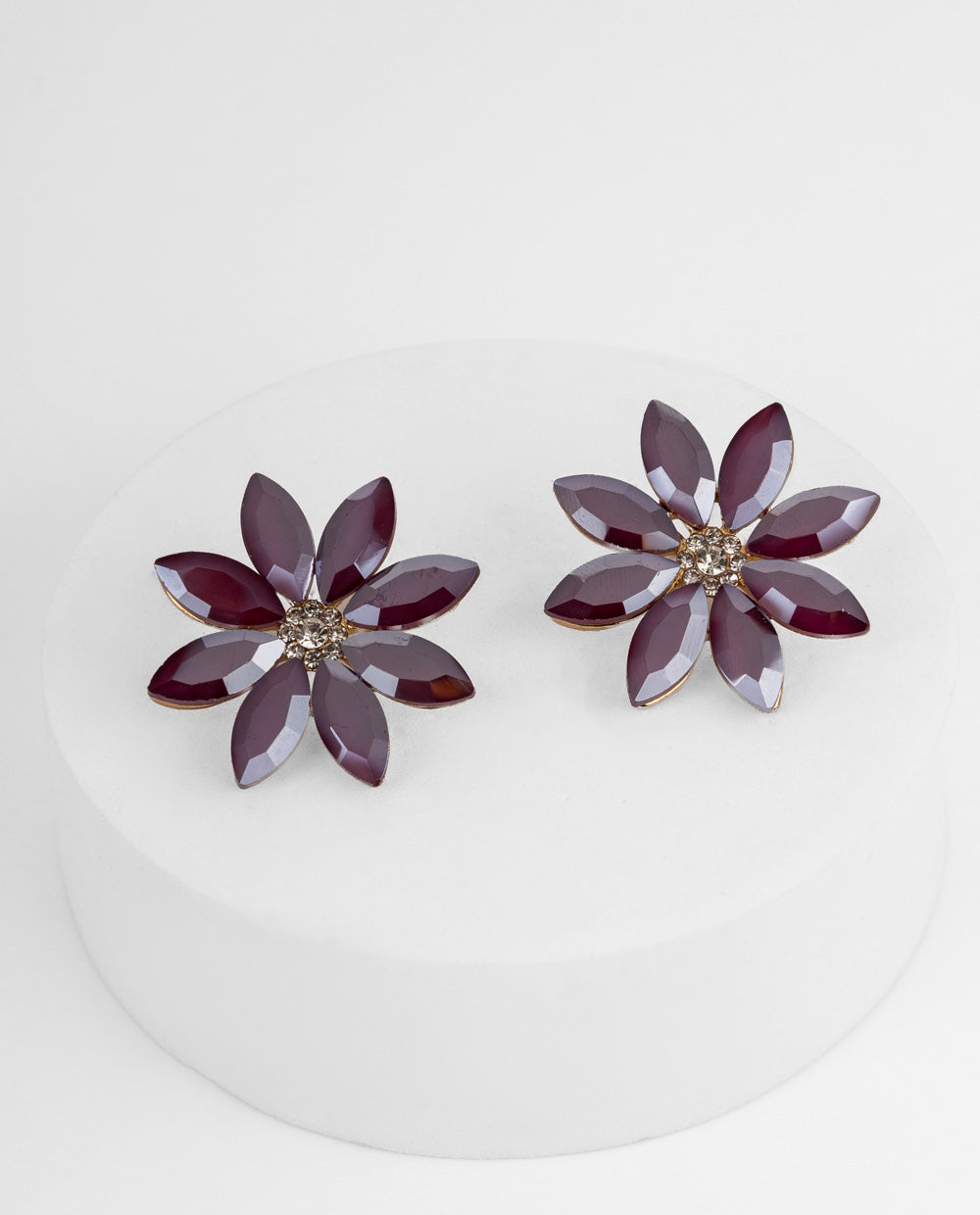 Estos aretes en forma de flor con pétalos color borgoña y cristales en el centro son ideales para elevar cualquier look. Aportan un aire sofisticado y femenino, perfecto para ocasiones especiales o para destacar en tu día a día.