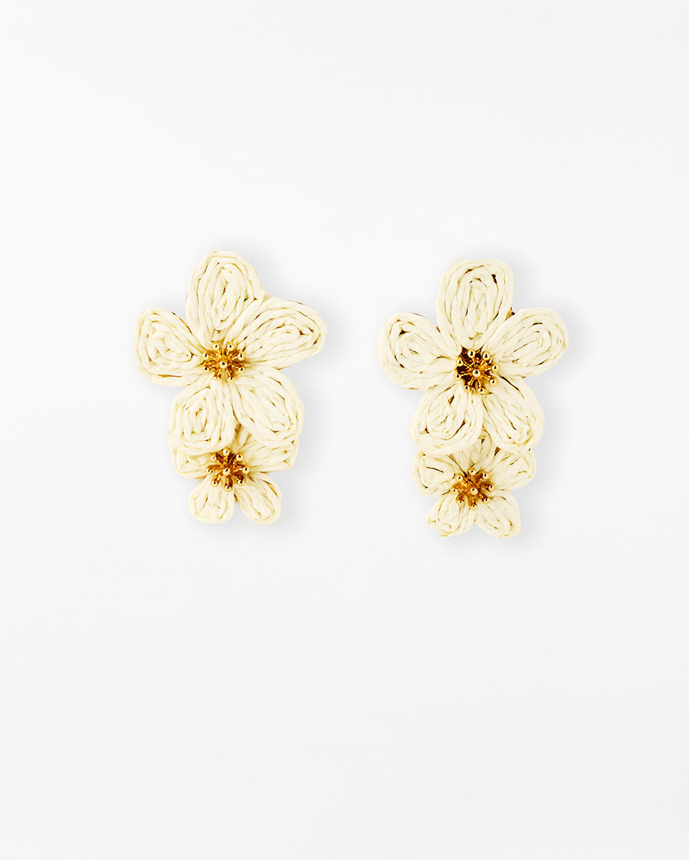 Aretes con diseño floral doble en color marfil, livianos y elegantes, ideales para iluminar cualquier look con un toque delicado.