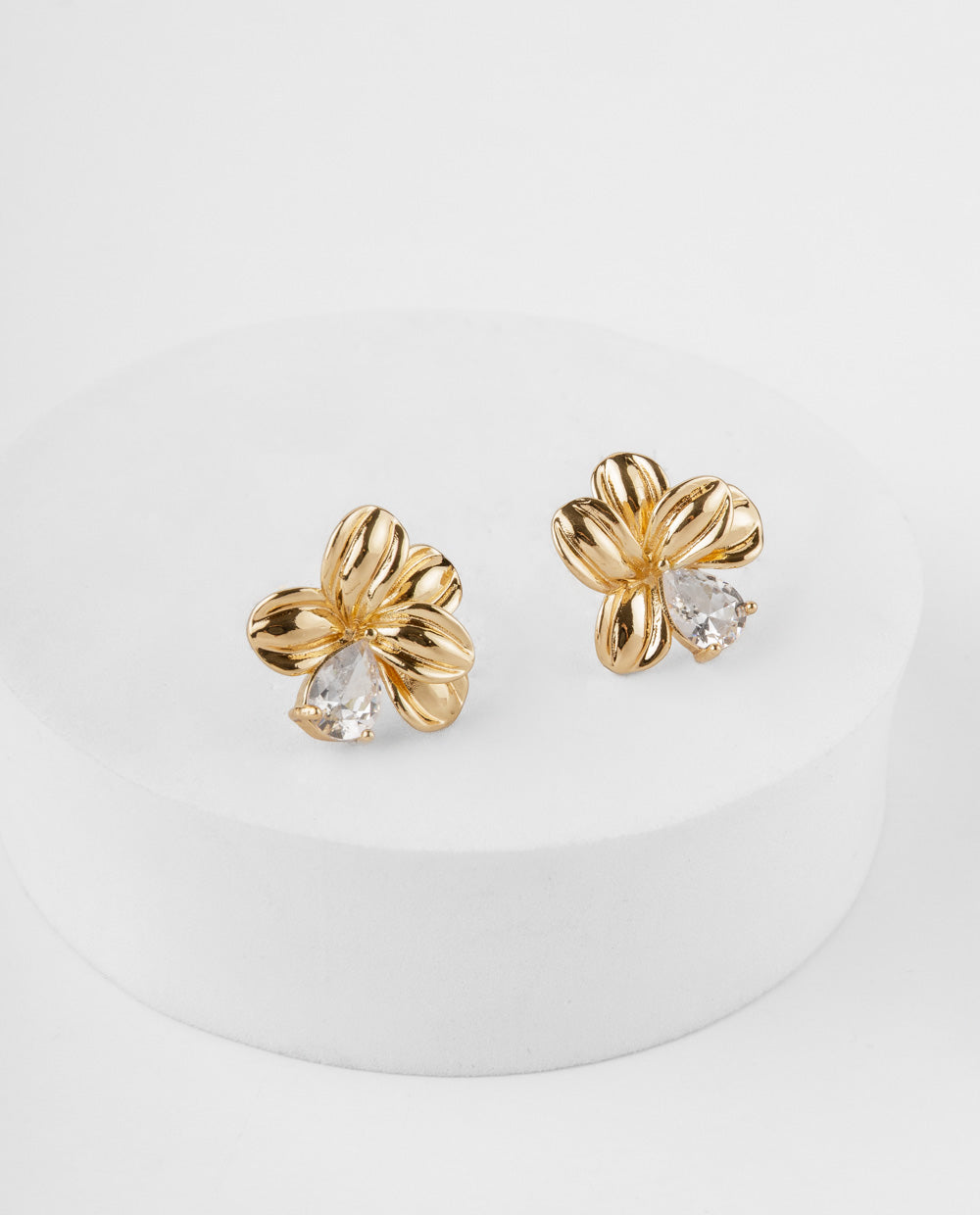 Estos aretes en forma de flor dorada destacan por su delicado diseño con pétalos texturizados y un cristal en forma de lágrima que aporta brillo sutil. Su estilo elegante y primaveral los convierte en el complemento perfecto para vestidos frescos, blusas románticas o looks casuales con un aire boho chic. Un accesorio versátil que ilumina tu estilo con un toque sofisticado.