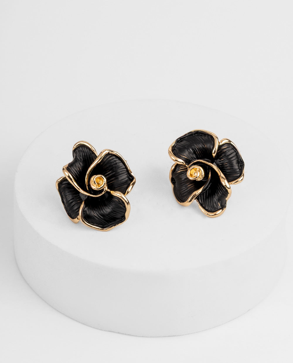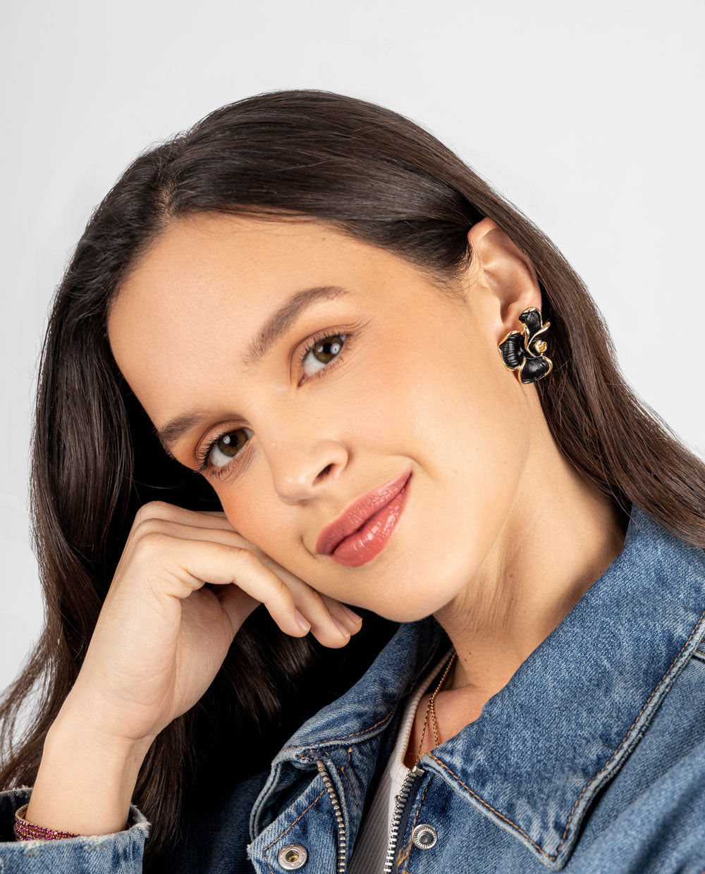 Un clásico con actitud. Estos aretes en forma de flor negra con bordes dorados aportan elegancia con un toque moderno y audaz. Perfectos para elevar cualquier look, desde uno casual hasta uno de noche. ¡Dale protagonismo a tu estilo con cada detalle!