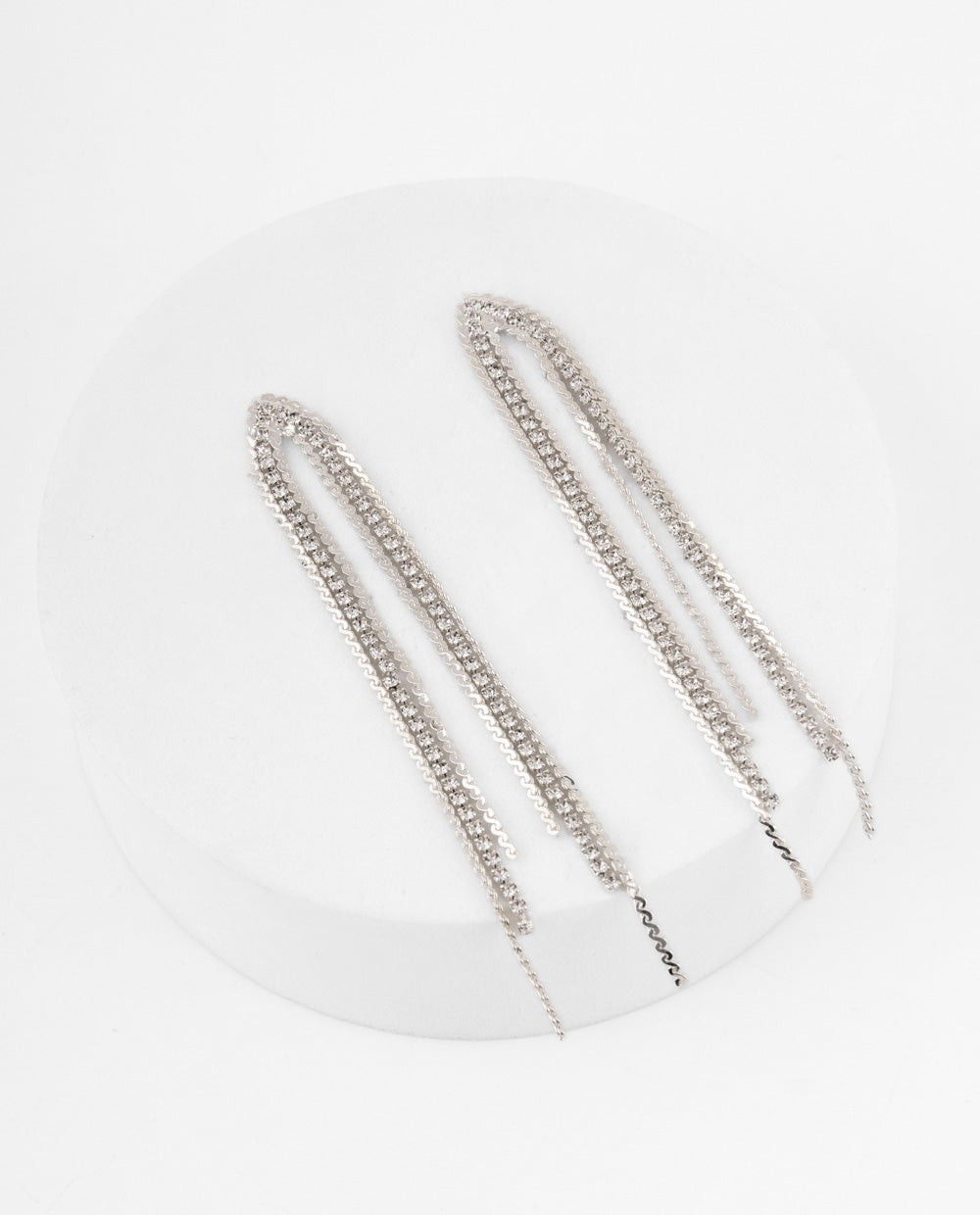 De la colección Moda, diseñados para un look de fiesta elegante y sofisticado. Su caída de cadenas brillantes aporta movimiento y luz, convirtiéndolos en el accesorio perfecto para resaltar cualquier outfit nocturno.