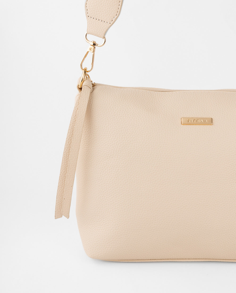 Cartera beige con correa ancha