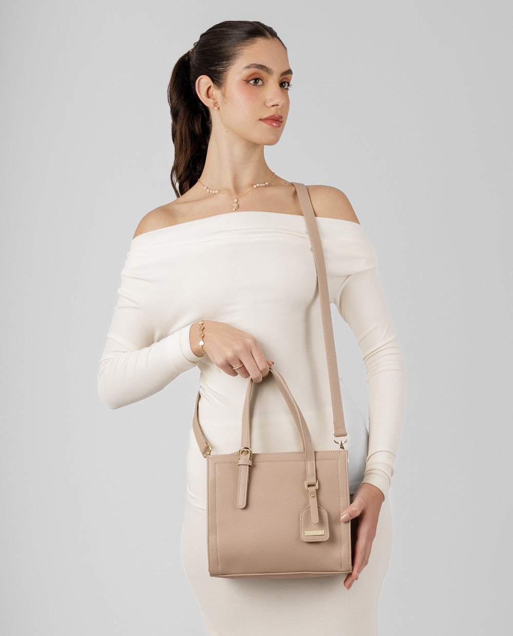 Ideal para brillar con estilo propio. Esta cartera nude es ese básico chic que no puede faltar en tu clóset. Su forma estructurada le da un toque elegante y moderno, perfecta para acompañarte a la oficina, un brunch o una cita casual. Tiene asa corta y una correa larga ajustable para usarla como crossbody o al hombro, según tu mood. ¡Tu aliada 24/7 para un look limpio, sofisticado y muy tú! ✨
