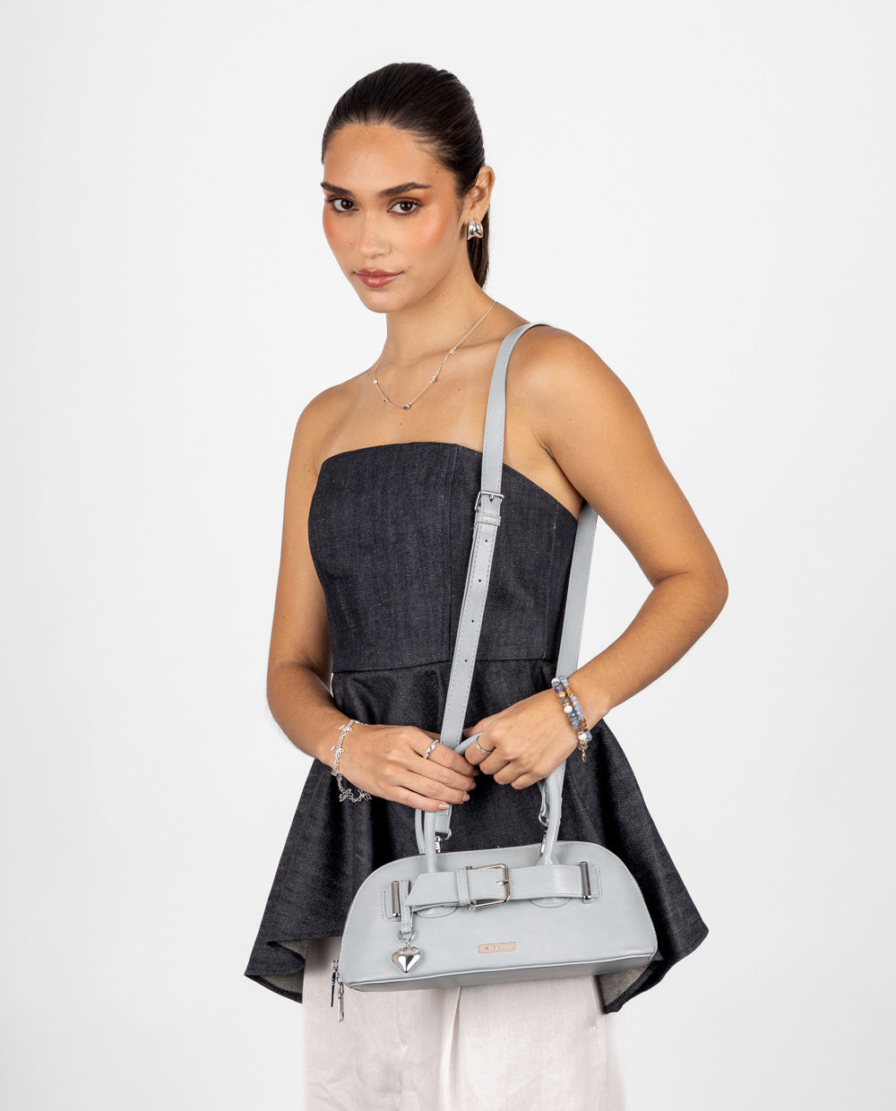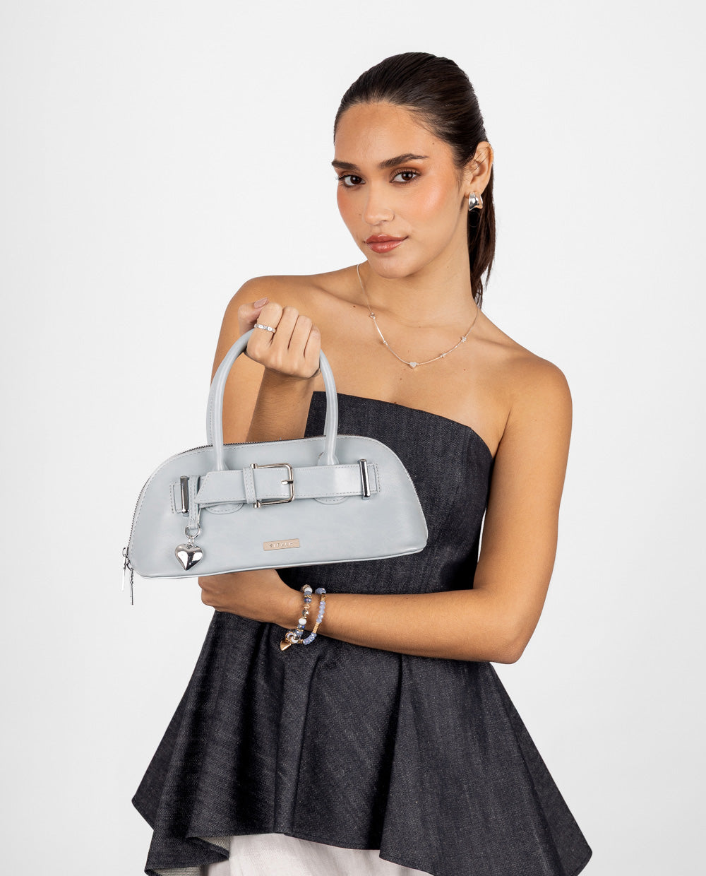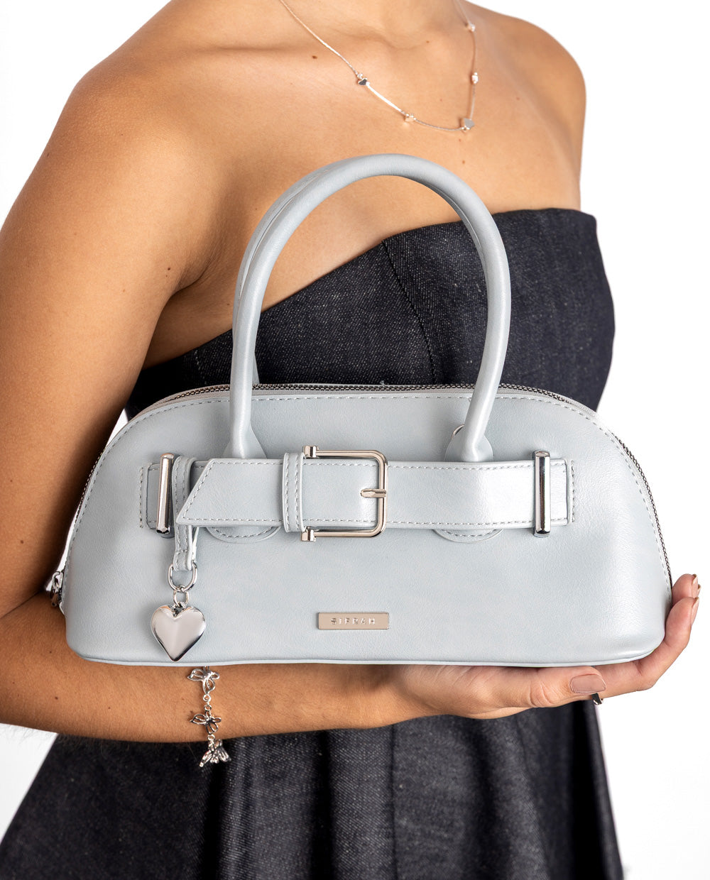 Atrévete a destacar con esta cartera en denim celeste, parte de la tendencia Back to Denim. Su diseño combina modernidad y practicidad con asas resistentes, correa ajustable y un detalle de charm corazón metálico que aporta un toque romántico. Ideal para usar cruzada o de mano, acompaña looks casuales y urbanos con un aire fresco y versátil.