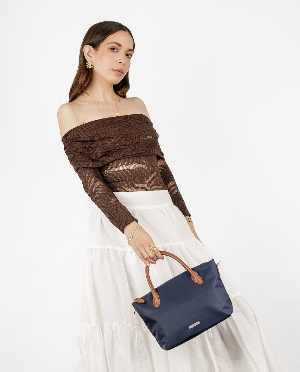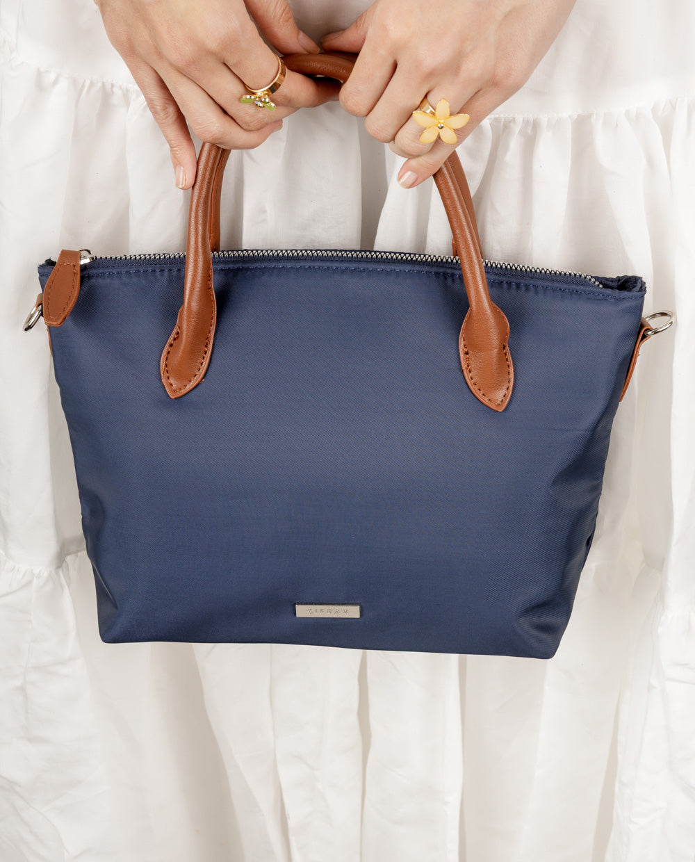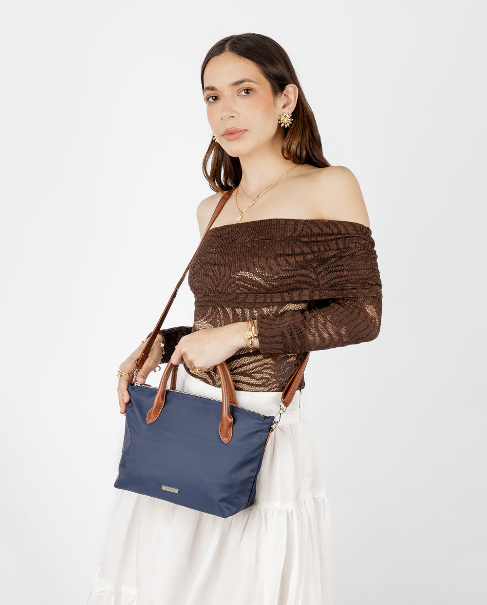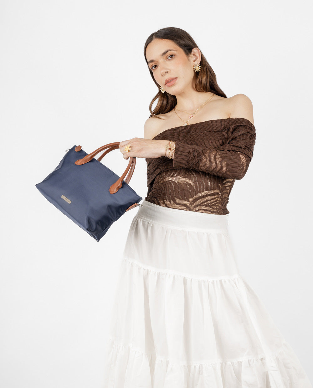 Diseñada para acompañarte en tu día a día con estilo y funcionalidad. Esta cartera tipo tote está confeccionada en material tipo nylon, resistente y liviano, con asas cortas en contraste marrón y una correa larga removible para llevarla también como crossbody. Su diseño práctico te permite llevar lo esencial con un toque moderno y elegante. Ideal para la oficina, clases o salidas casuales.