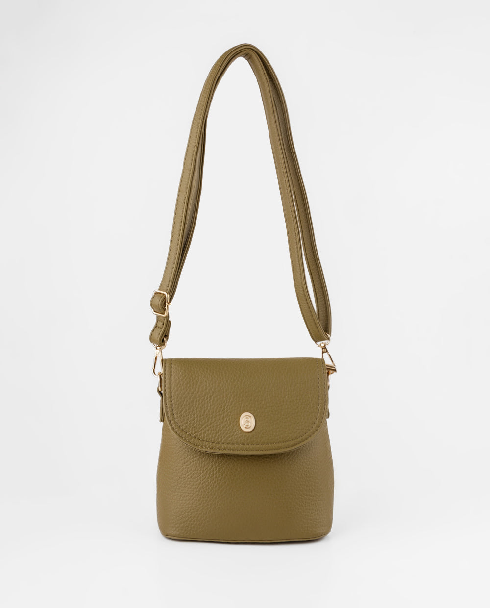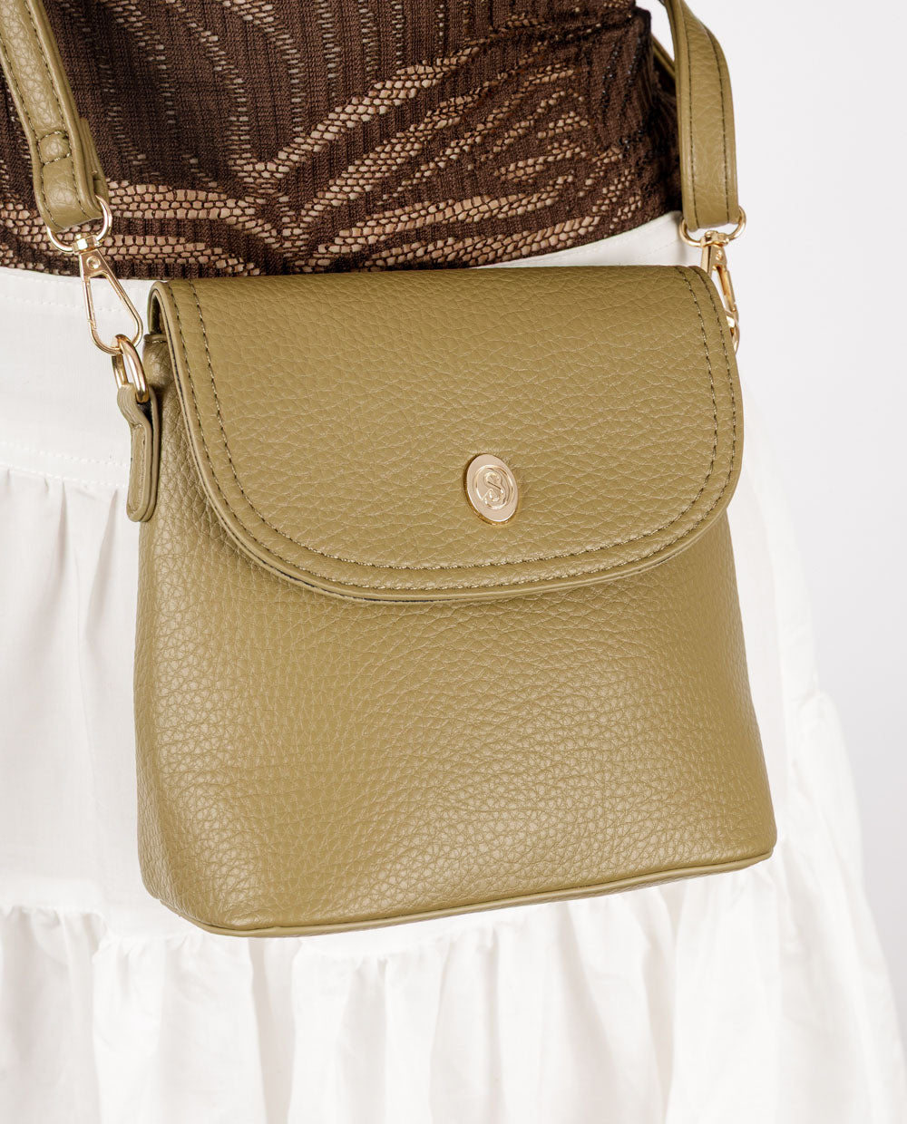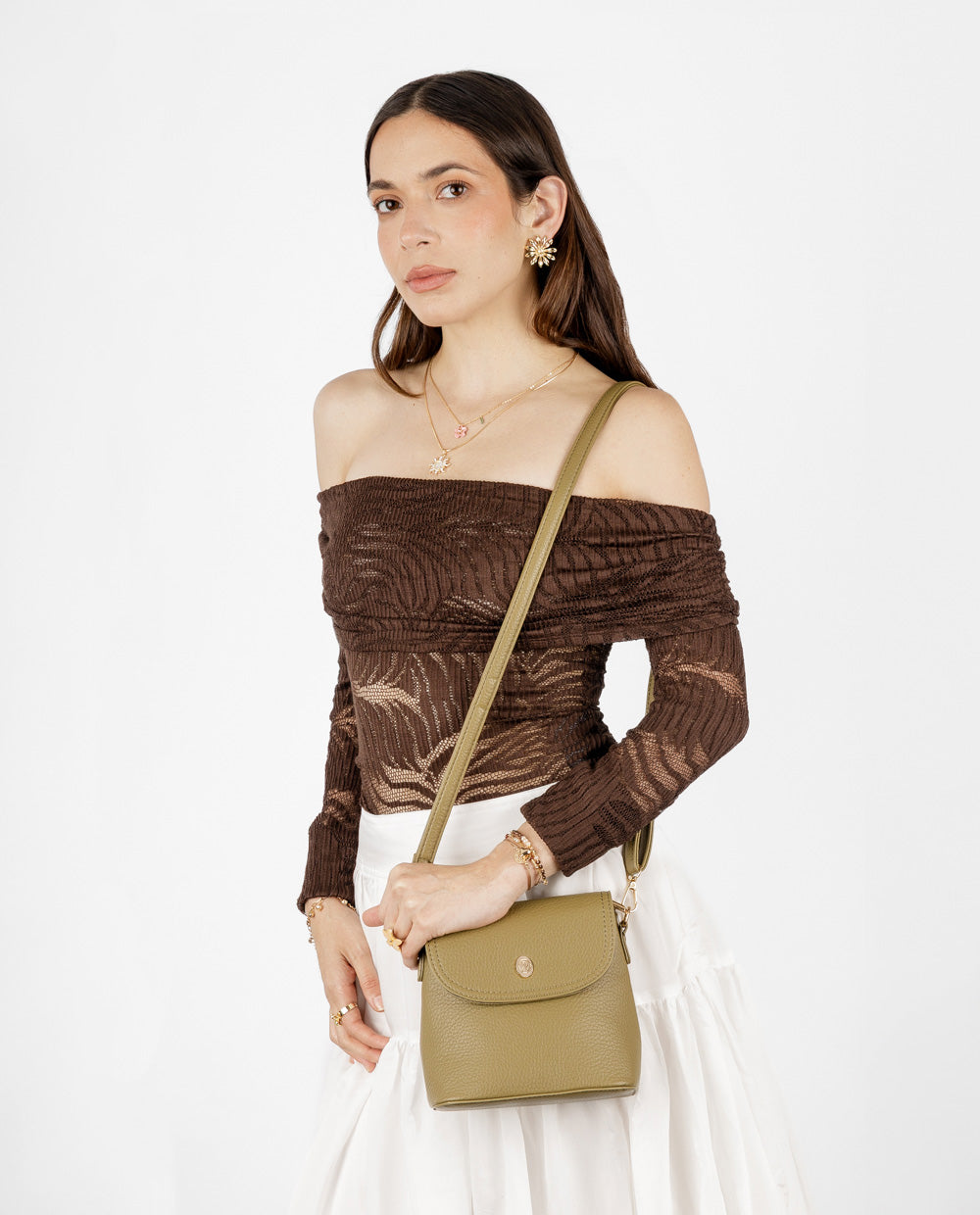 Minimalista, práctica y con un color que roba miradas. Esta mini cartera tipo crossbody en color verde oliva es perfecta para acompañarte en tus días más movidos. Su diseño compacto con broche metálico y correa ajustable te permite llevar tus básicos con estilo y comodidad. Un básico chic para brillar donde vayas.