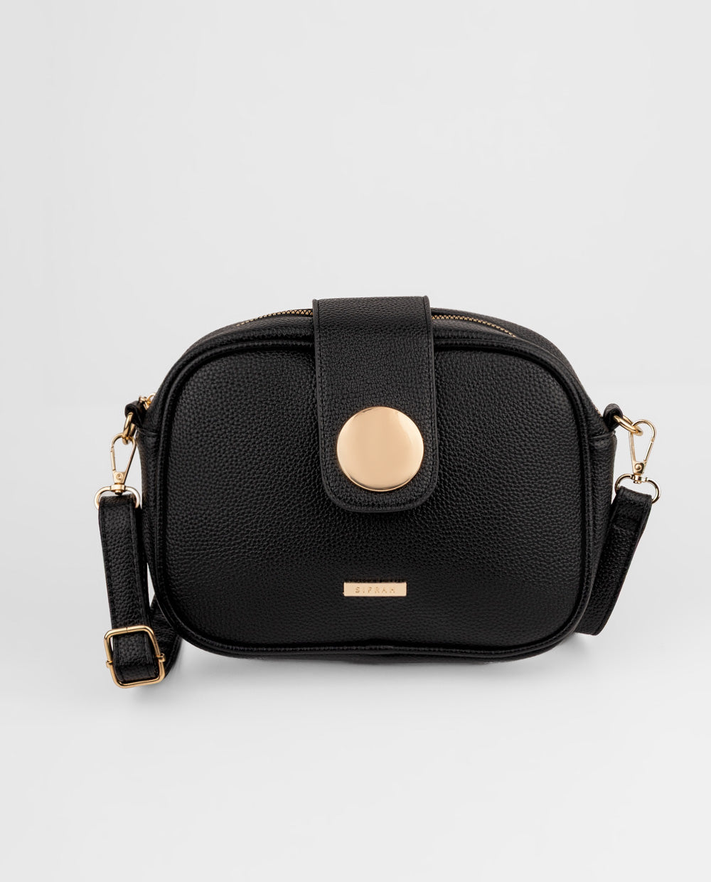 Cartera negra con detalle dorado