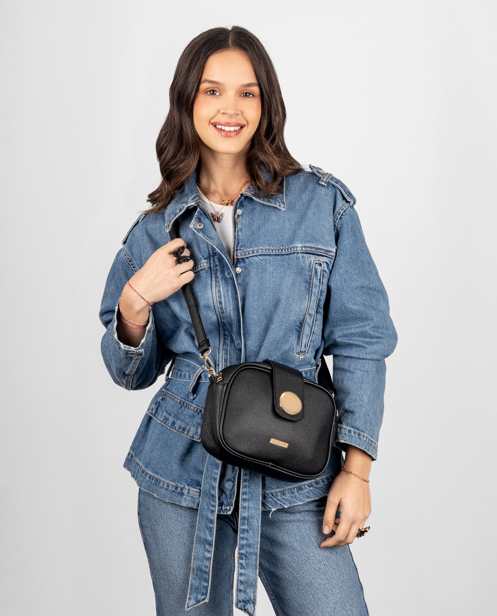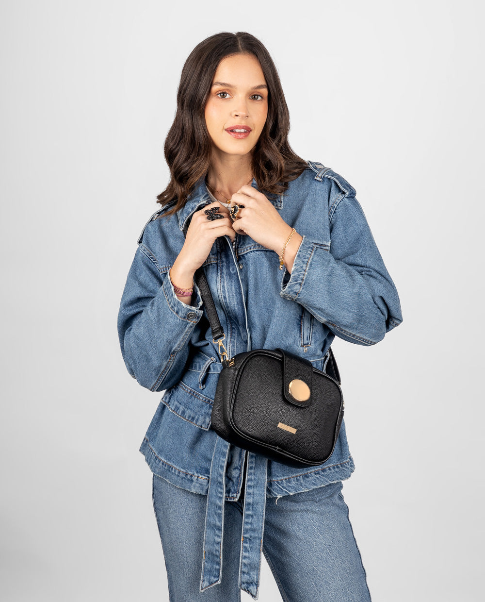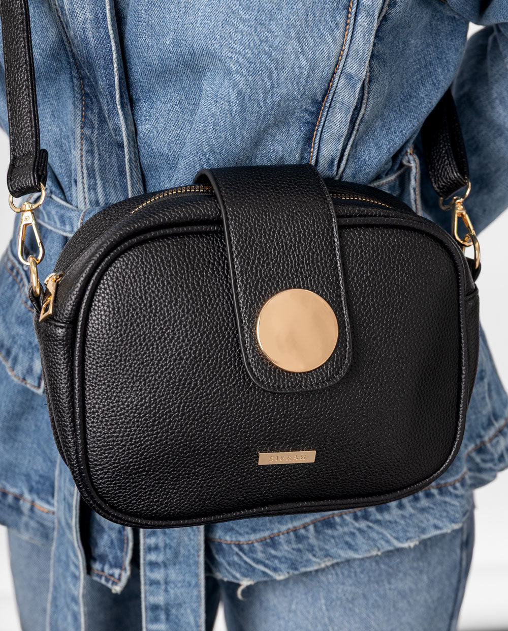 ¡Un toque de brillo para tu día a día! Esta mini cartera negra es compacta pero poderosa, ideal para llevar lo esencial con estilo. Su tapa con imán y detalle brillante en azul la hace única y práctica. Perfecta para usar como crossbody gracias a su correa larga. ¡Luce fabulosa sin esfuerzo!