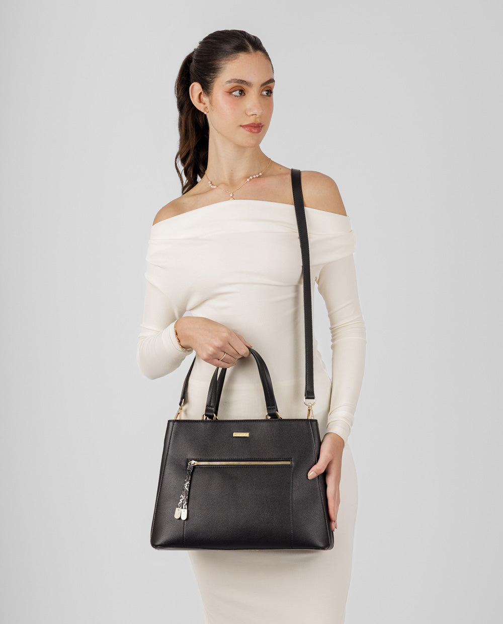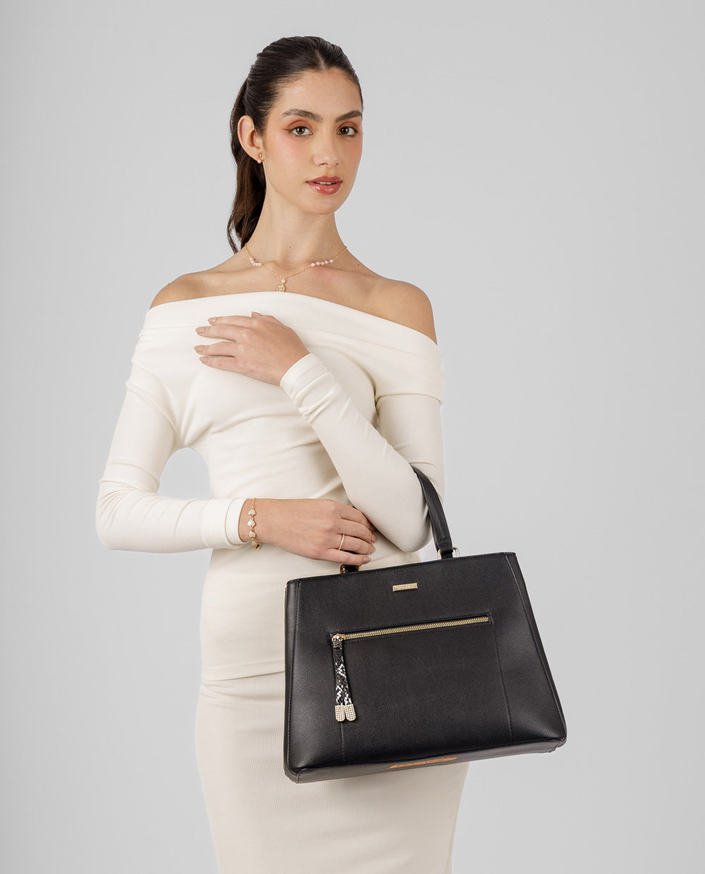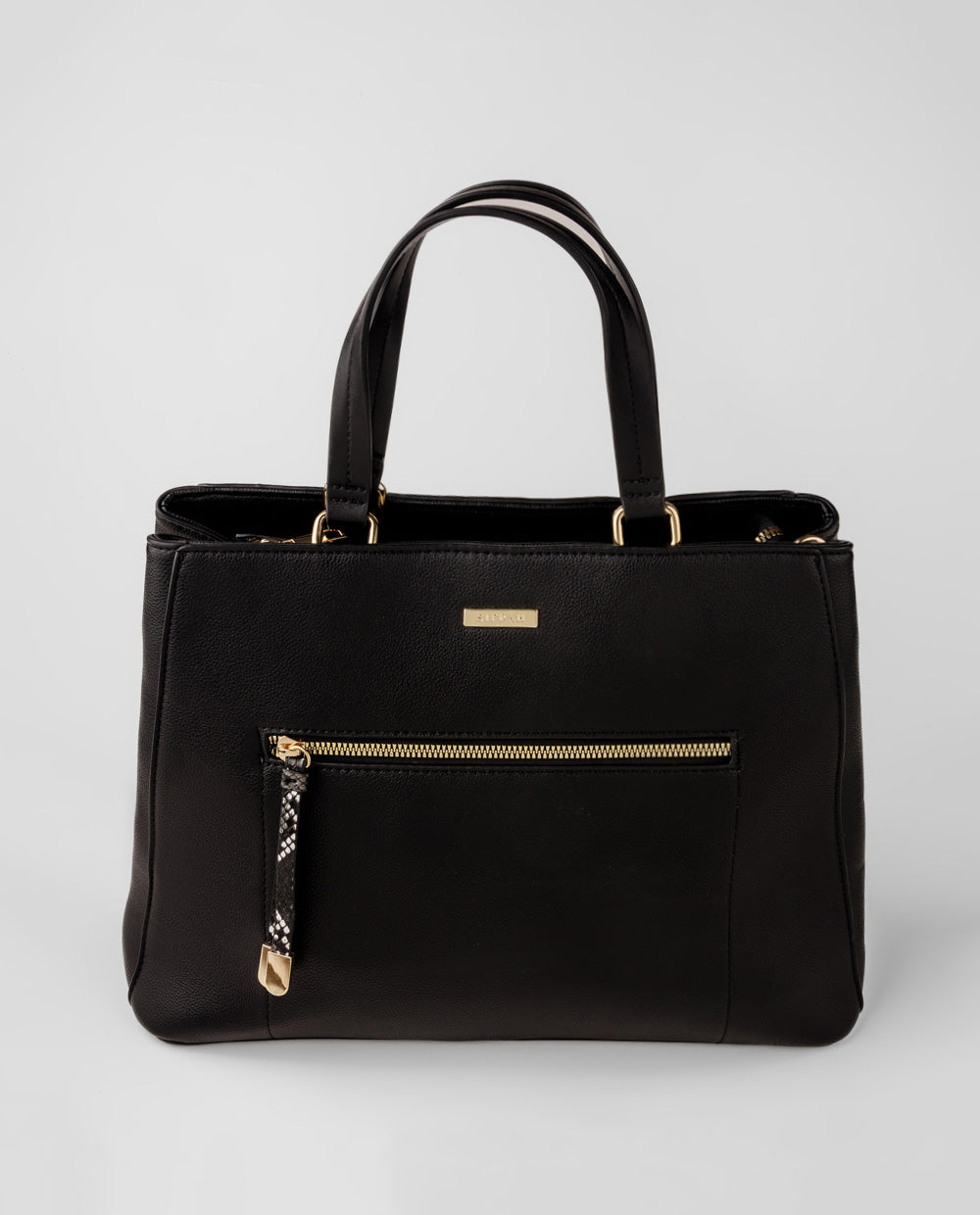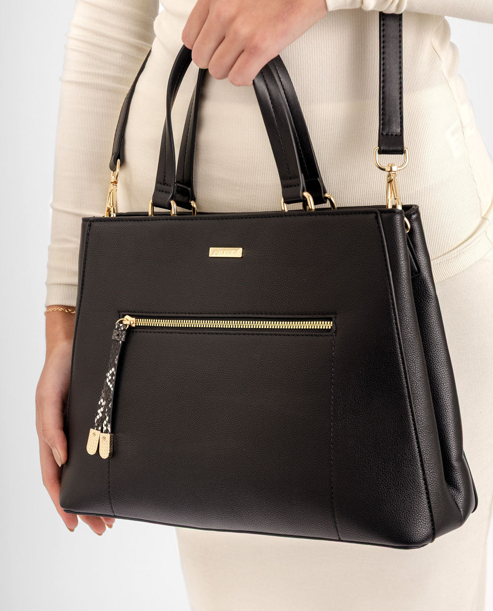 Perfecta para tu rutina diaria con ese toque de elegancia que nunca falla. Su diseño estructurado y detalles dorados elevan cualquier outfit, desde la oficina hasta una salida con amigas. Espaciosa, cómoda y súper versátil, es ese básico chic que combina con todo. Tiene asa corta y una correa larga ajustable para usarla como crossbody o al hombro, según tu mood. ¡Tu aliada 24/7 para un look limpio, sofisticado y muy tú! ✨