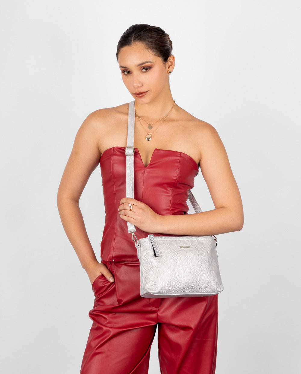 Cartera plateada crossbody