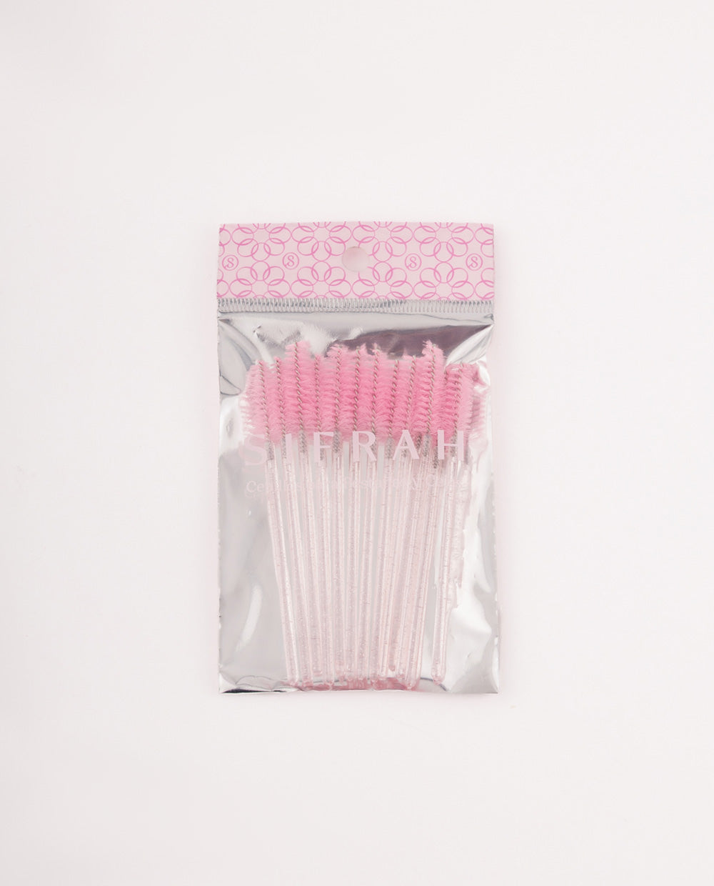 Pack de cepillos rosados con mango transparente, ideales para peinar pestañas y cejas con precisión y mantener su forma durante el día.
