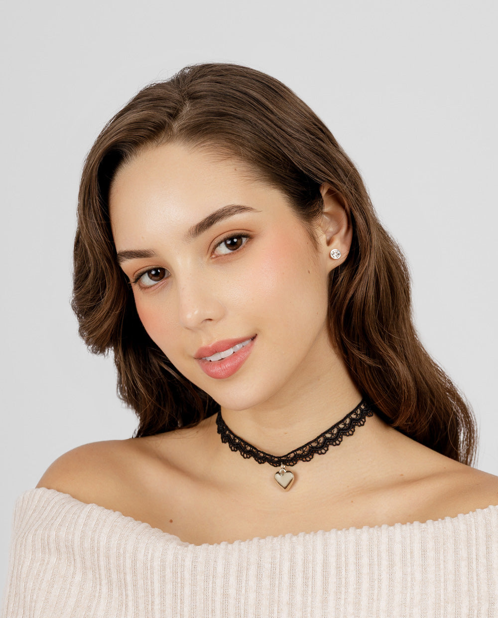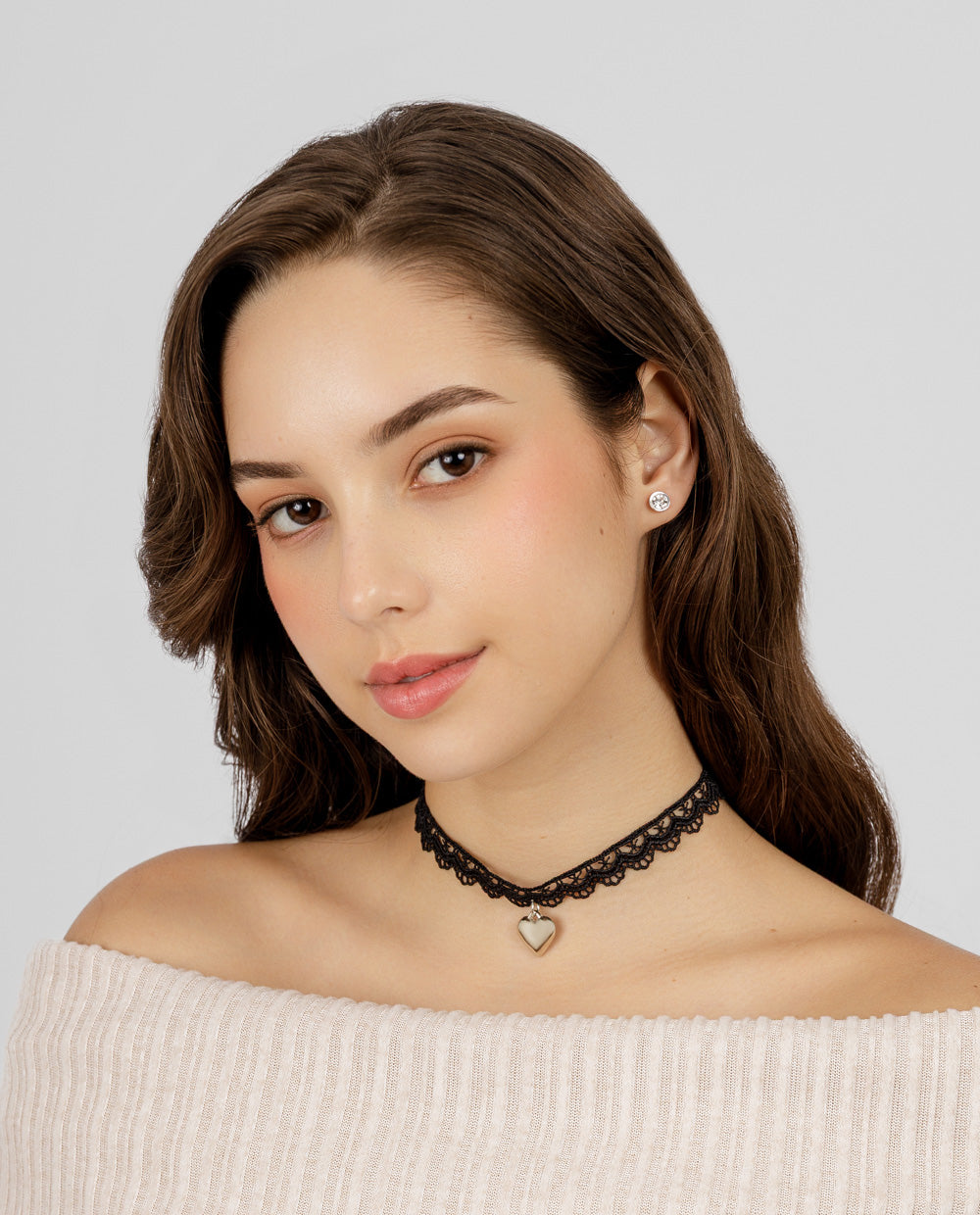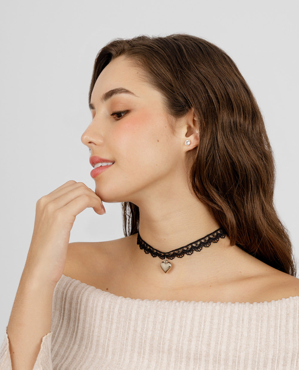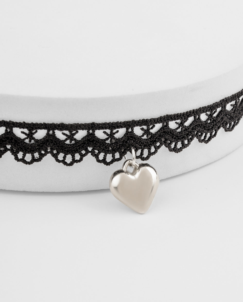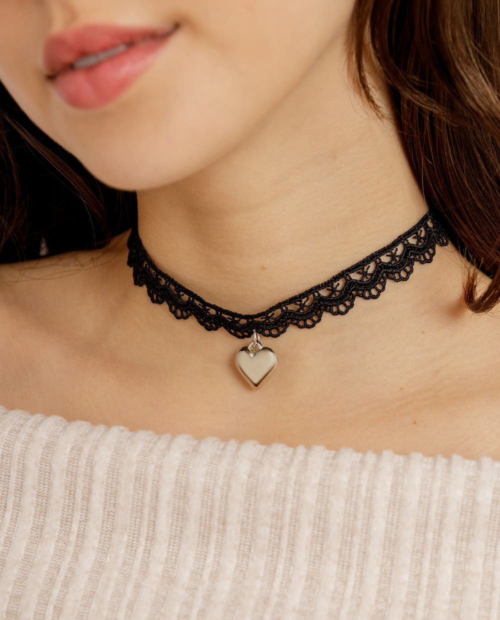 Un accesorio lleno de estilo y actitud 💕 Este choker con encaje negro delicado y un dije de corazón plateado es perfecto para elevar tus outfits con un toque romántico y misterioso. Ideal para Sifrahmigas que brillan con su propio estilo.