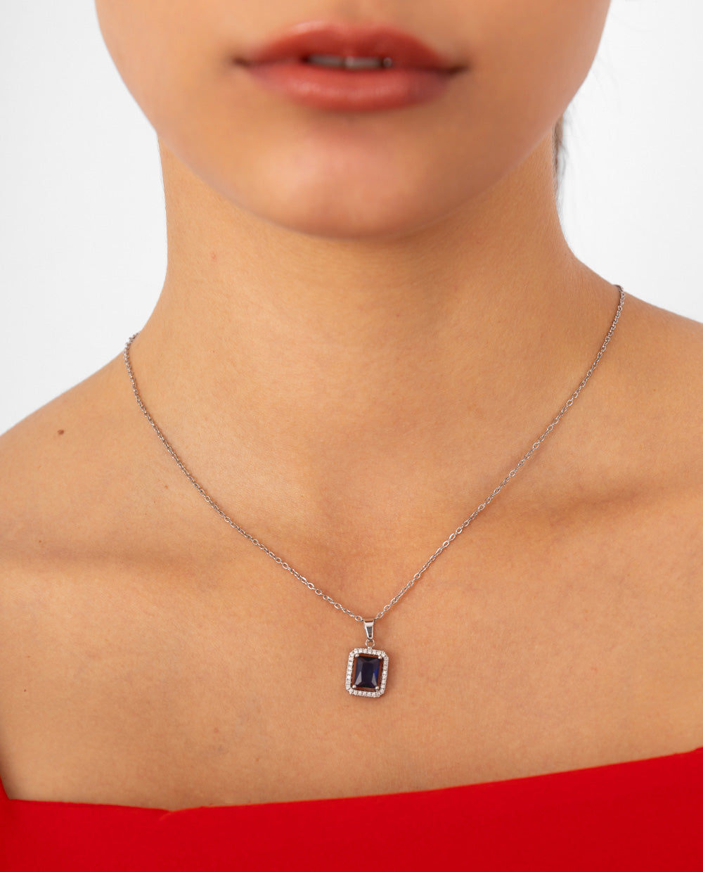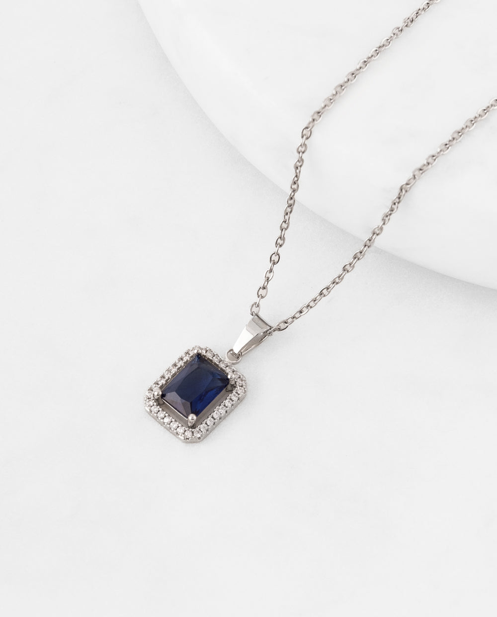 Collar bañado en plata con piedra azul y zircón