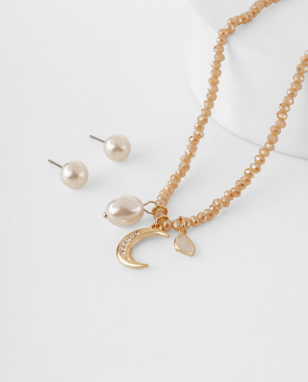 Collar con aretes perla y dije de luna