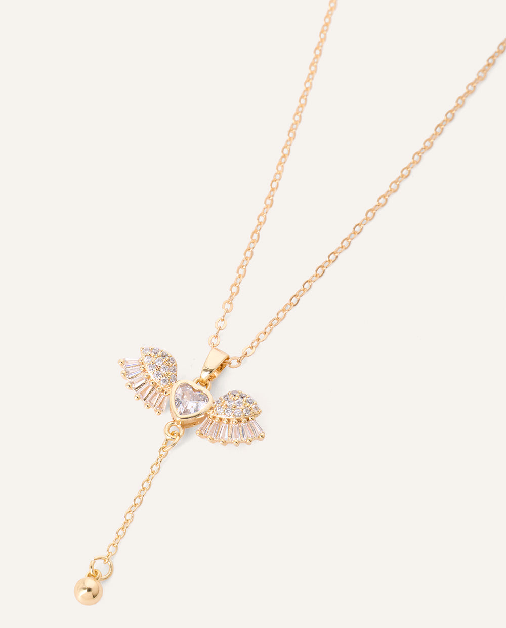 Collar dorado dije corazón alado con zircón