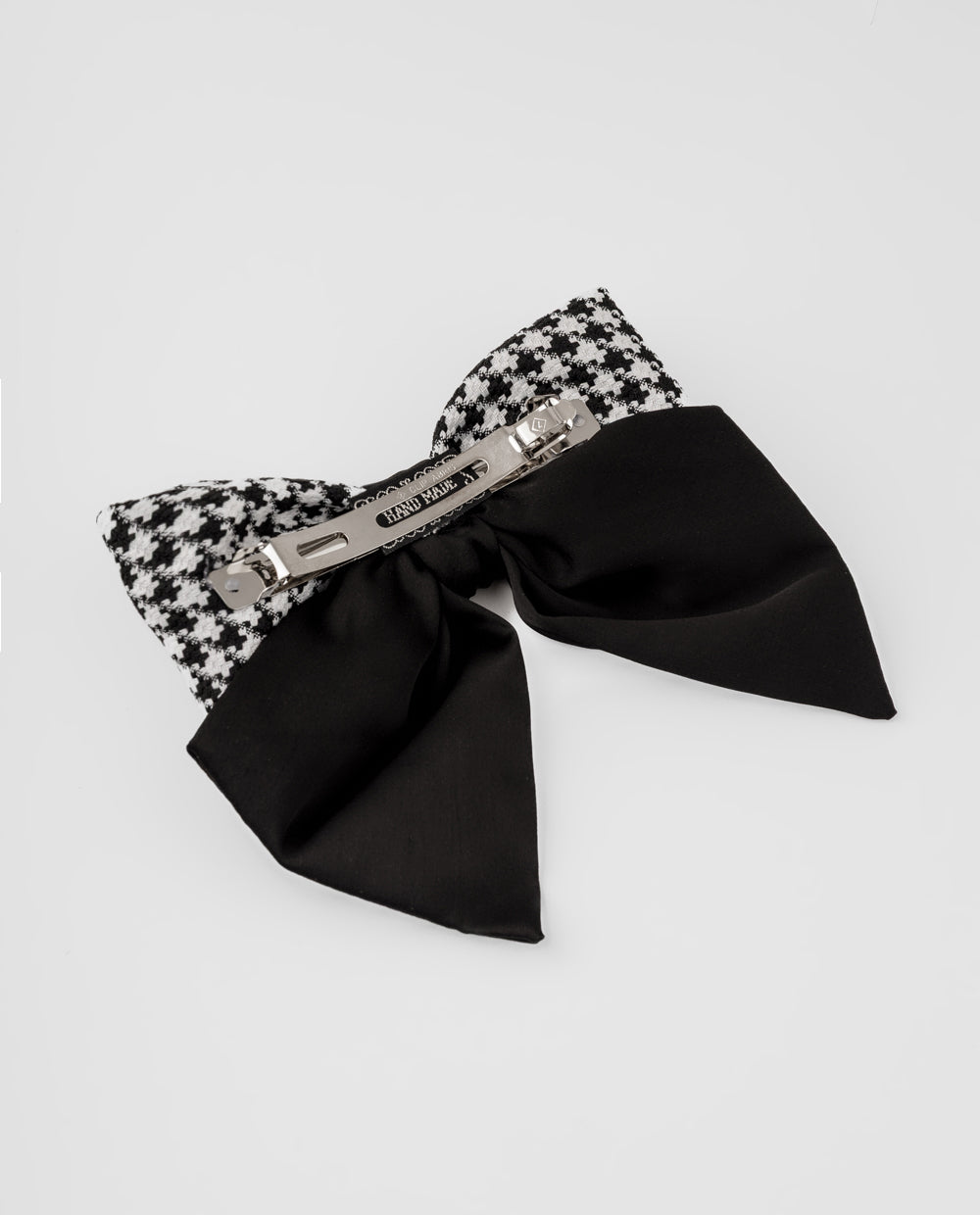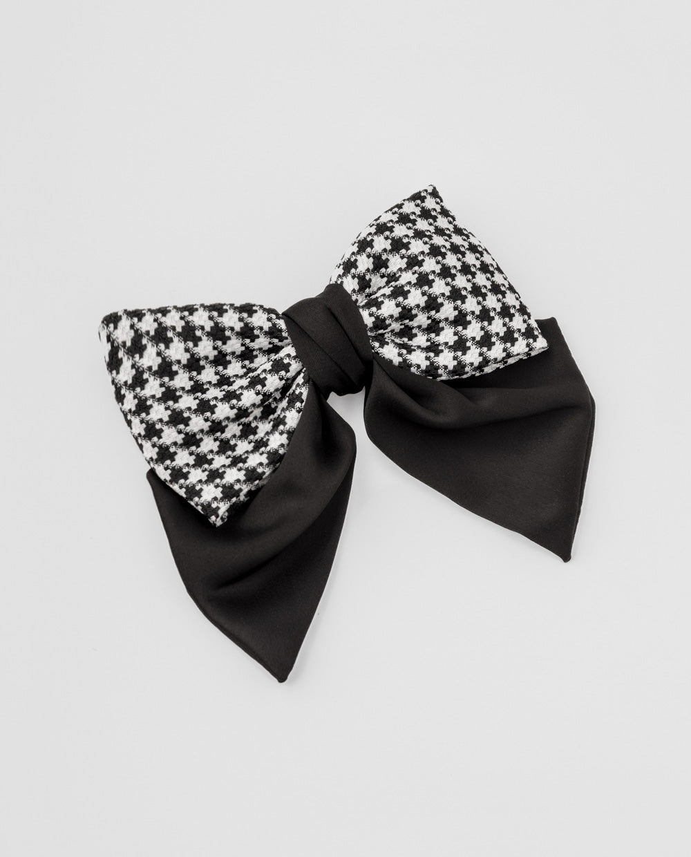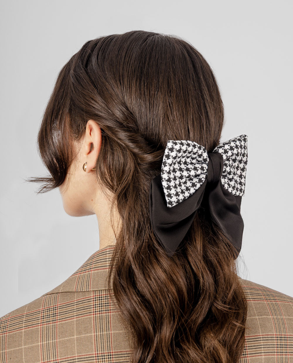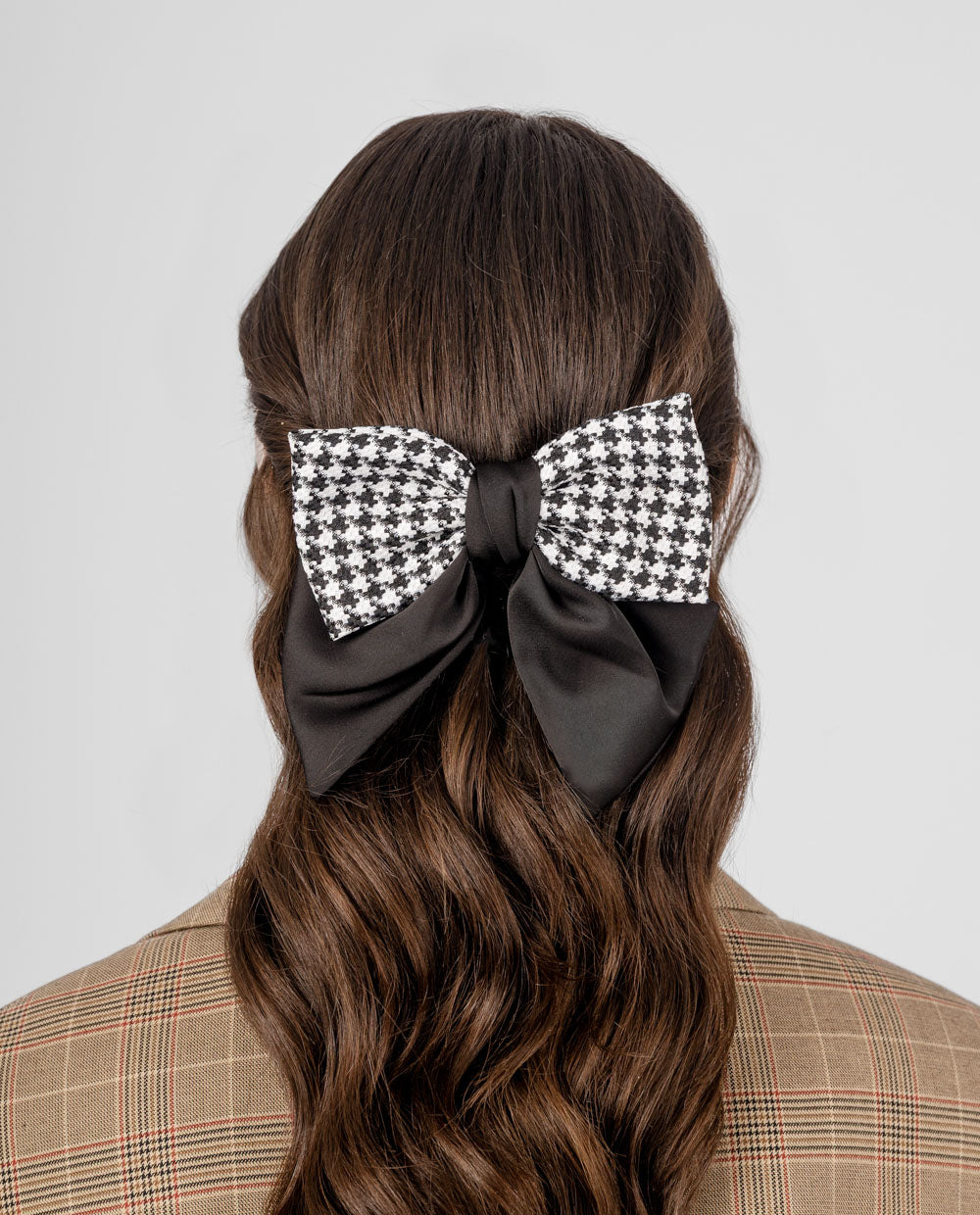 Este lazo es el toque chic que tu peinado necesita. Su print clásico en blanco y negro lo hace súper combinable, mientras que el diseño en punta le da un aire sofisticado. Ideal para Sifrahmigas que aman los detalles con estilo. 💁🏻♀️✨