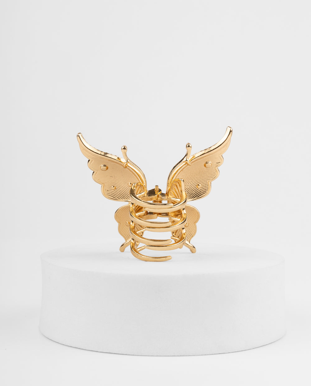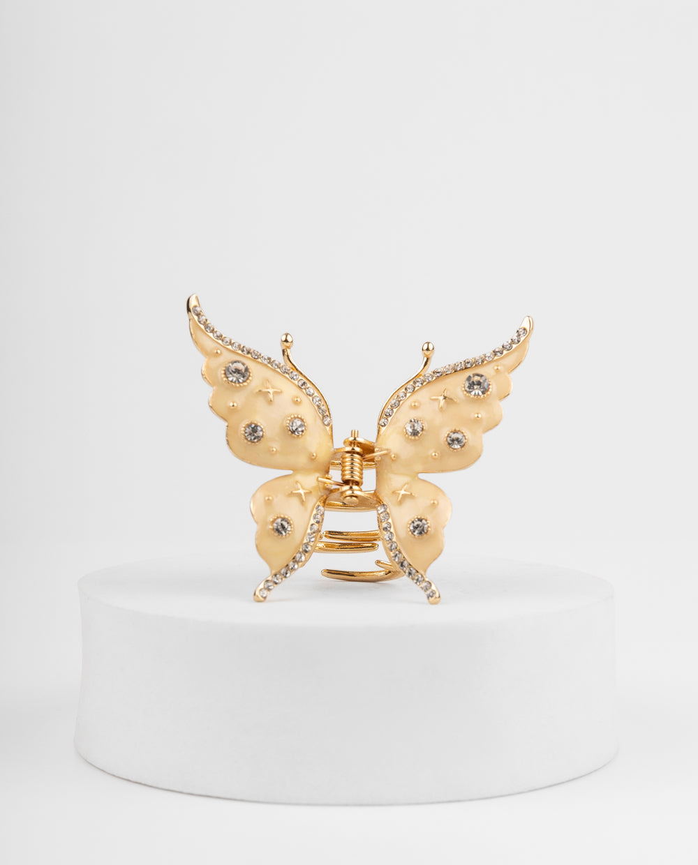 Este gancho con diseño de mariposa en tono dorado está decorado con cristales y estrellas que le aportan un acabado sofisticado y femenino. Su estructura resistente permite sujetar el cabello con firmeza sin maltratarlo. Es ideal para elevar peinados semirecogidos o coletas con un toque de elegancia. Perfecto para ocasiones especiales o para resaltar tu estilo diario.