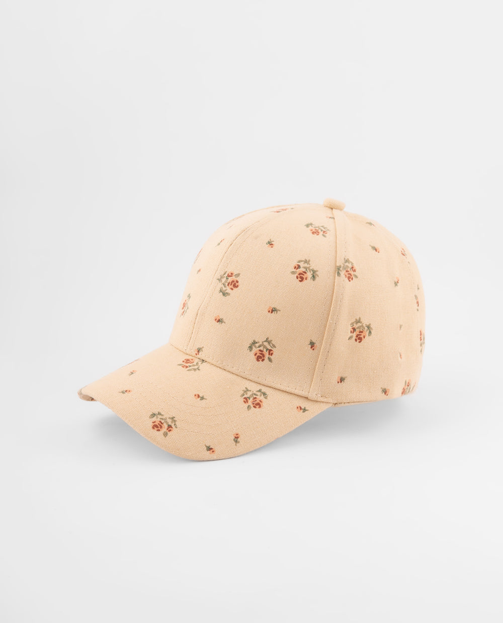 Gorra en tela suave con estampado floral mini. Cuenta con visera curvada y ajuste trasero metálico, perfecta para darle un toque femenino y fresco a tus looks casuales o de paseo.