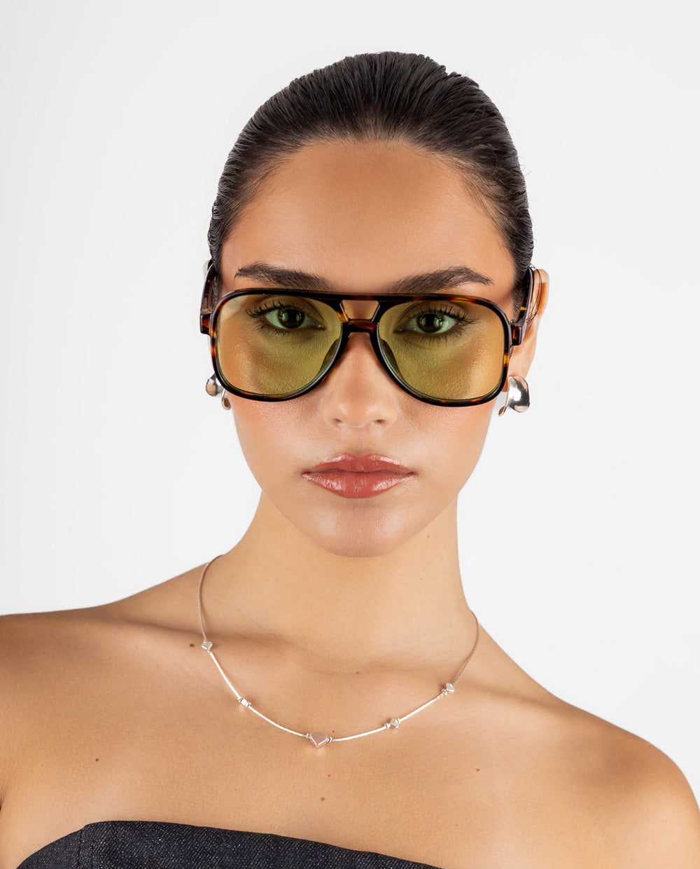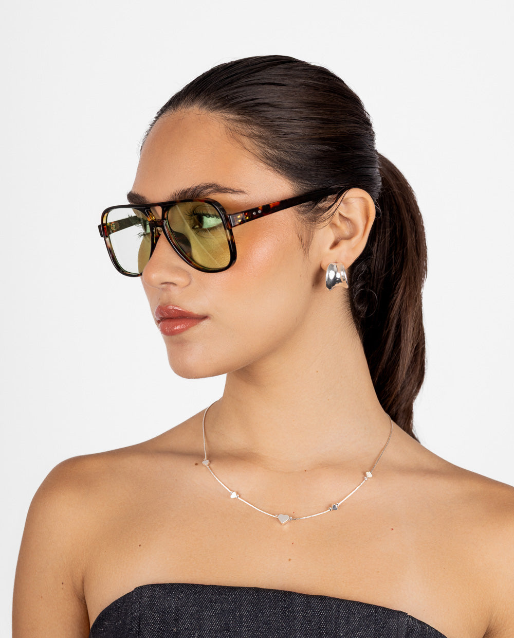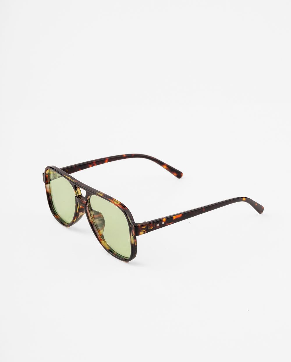 Lentes estilo aviador con montura efecto carey y luna verde clara, un diseño retro que combina estilo y frescura. Perfectos para looks casuales con denim o para dar un toque diferente y trendy a un outfit urbano. Un accesorio versátil que refleja personalidad y moda en cada ocasión.