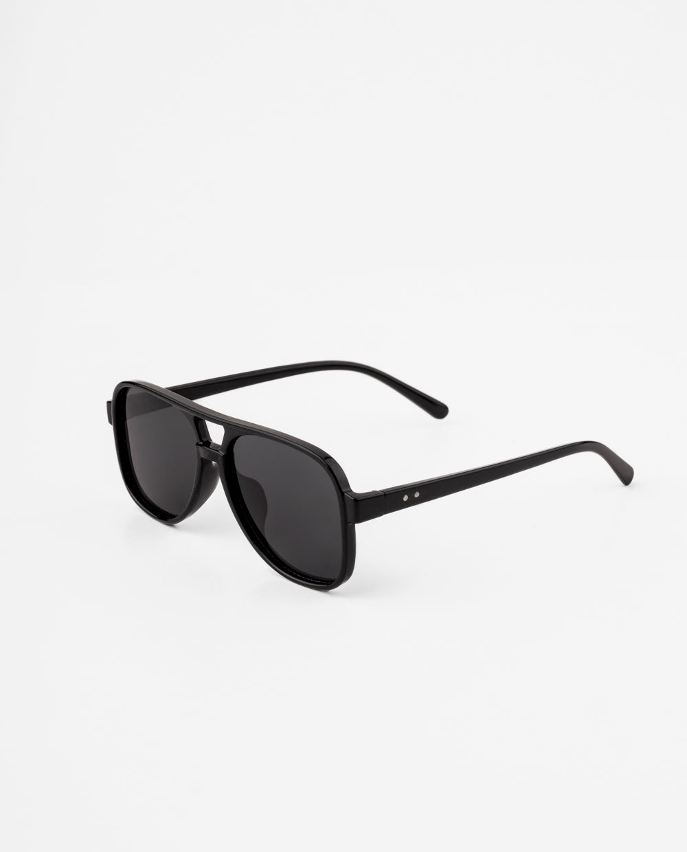 Lentes estilo aviador con montura negra y luna oscura, un clásico atemporal que combina elegancia y funcionalidad. Perfectos para looks casuales con denim o para dar un aire sofisticado a tu estilo urbano. Un accesorio versátil que nunca pasa de moda y aporta carácter a cualquier ocasión.