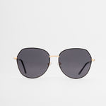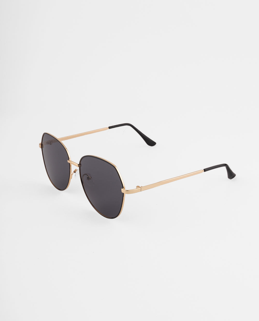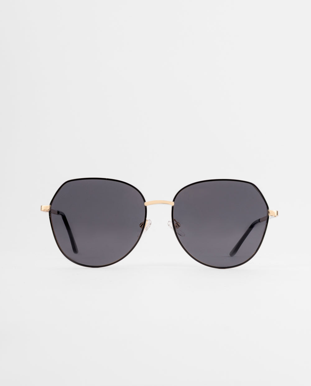 Lentes de sol con montura metálica dorada y lunas ovaladas en tono negro degradado que aportan un acabado moderno.