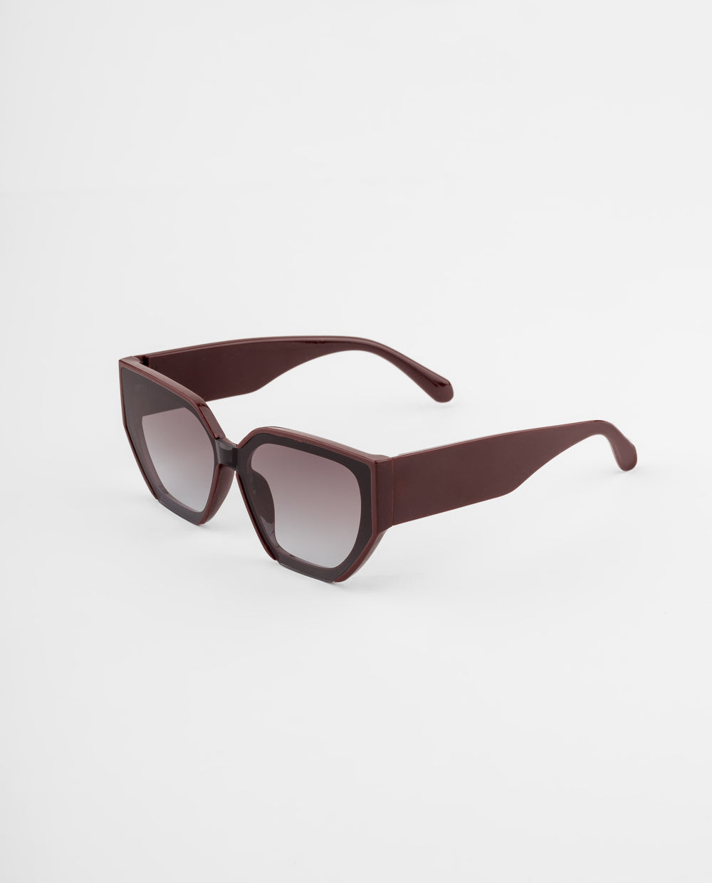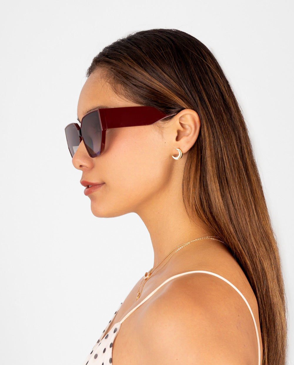 Lentes de sol de montura gruesa en color burgundy con diseño cuadrado y lunas degradadas. Su estructura amplia aporta un estilo moderno y atrevido.