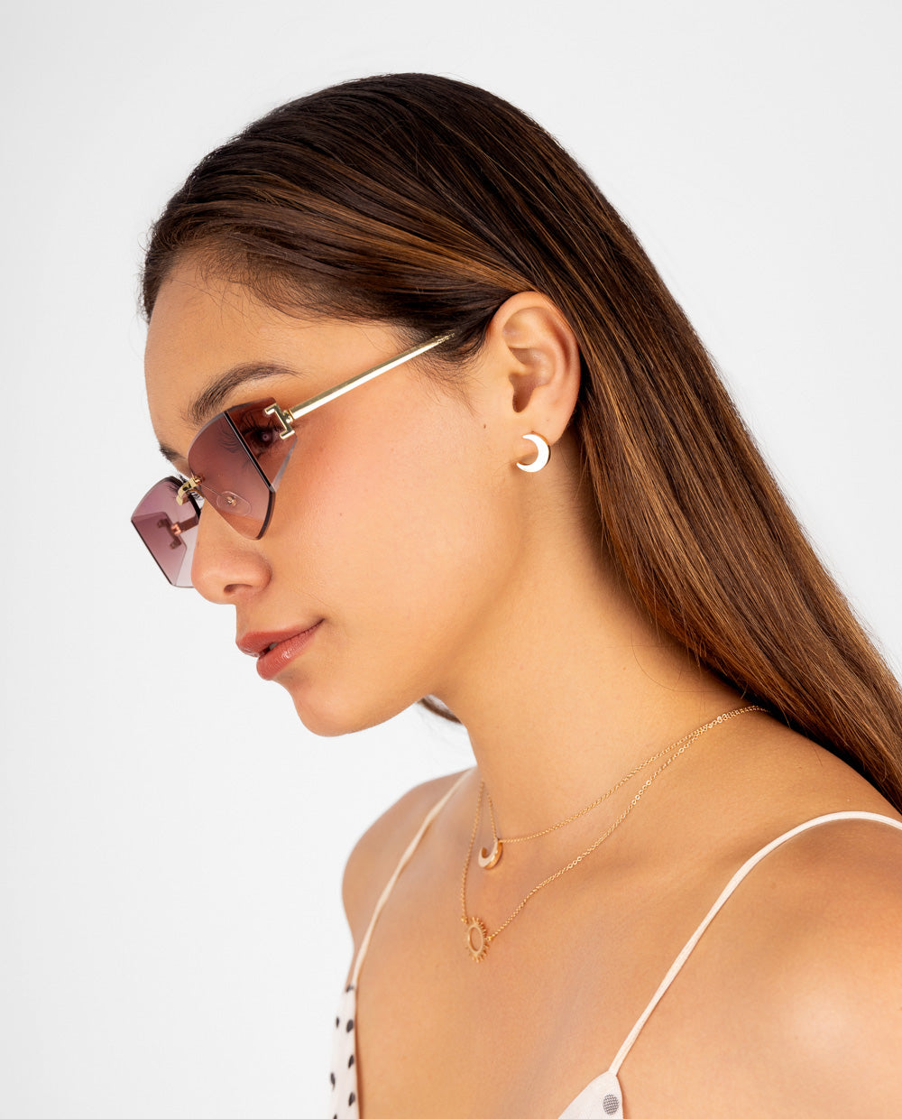 Lentes de sol dorado lunas rosadas