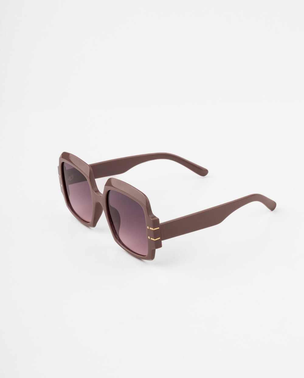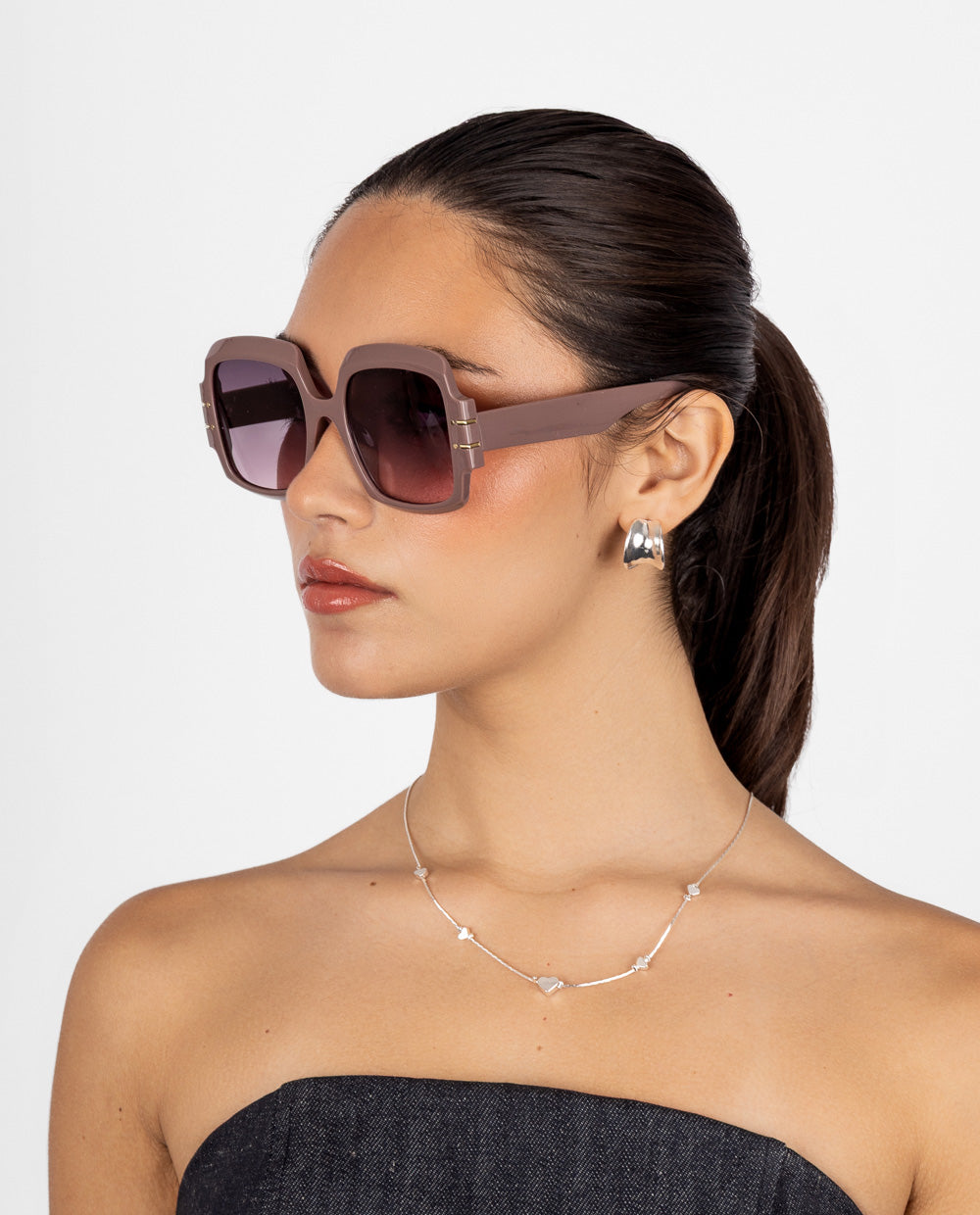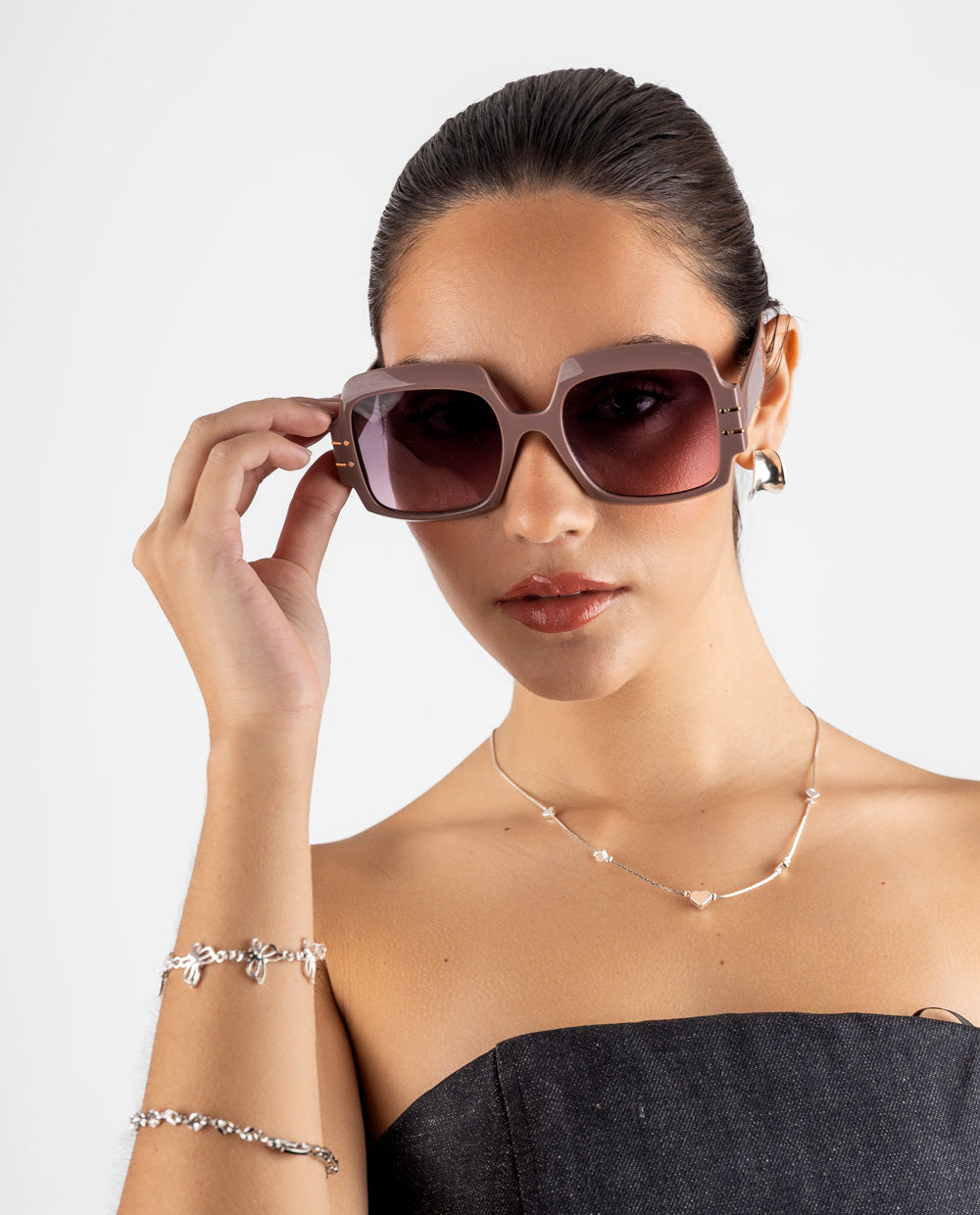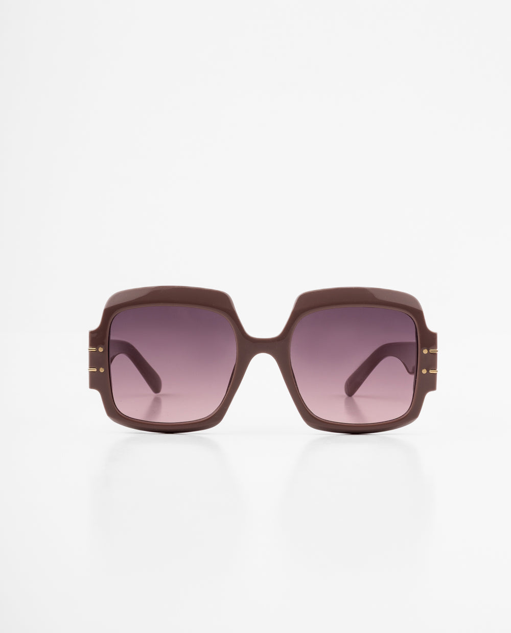 Lentes oversized con montura cuadrada marrón y luna degradada en tono púrpura, un diseño elegante y sofisticado que marca tendencia. Ideales para elevar looks casuales con denim o sumar un aire fashion a tu estilo diario. Un accesorio imprescindible que combina moda y protección en cada ocasión.