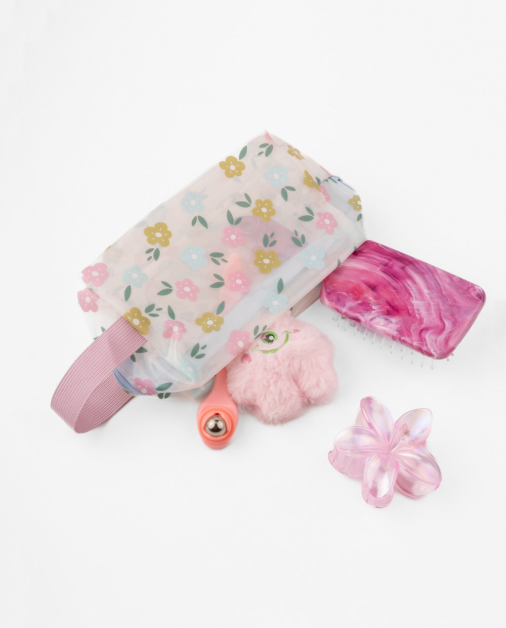 De nuestra colección Moda, este neceser con estampado de flores multicolor es el aliado perfecto para llevar maquillaje, skincare o accesorios pequeños siempre organizados. Su diseño alegre y práctico lo convierte en un imprescindible para viajes o para el día a día.