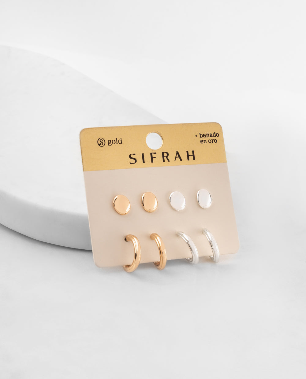 Set de aretes compuesto por diseños de argollas y botones, pensados para combinar entre sí o lucir por separado. Forman parte de nuestra colección Premium, están bañados en oro y plata, y elaborados con materiales hipoalergénicos, ideales para pieles sensibles. Un dúo versátil que eleva cualquier look con un toque moderno y sofisticado.