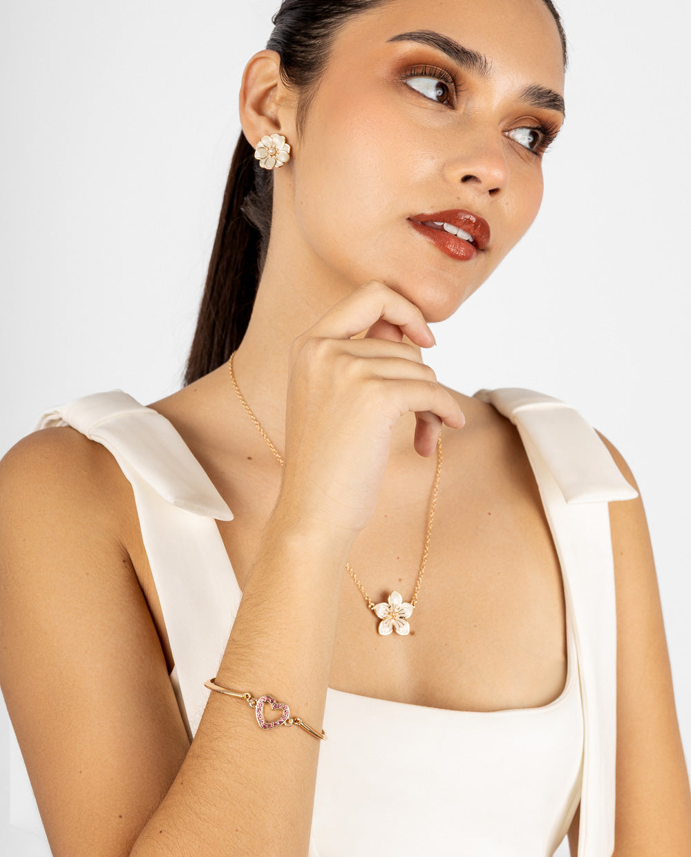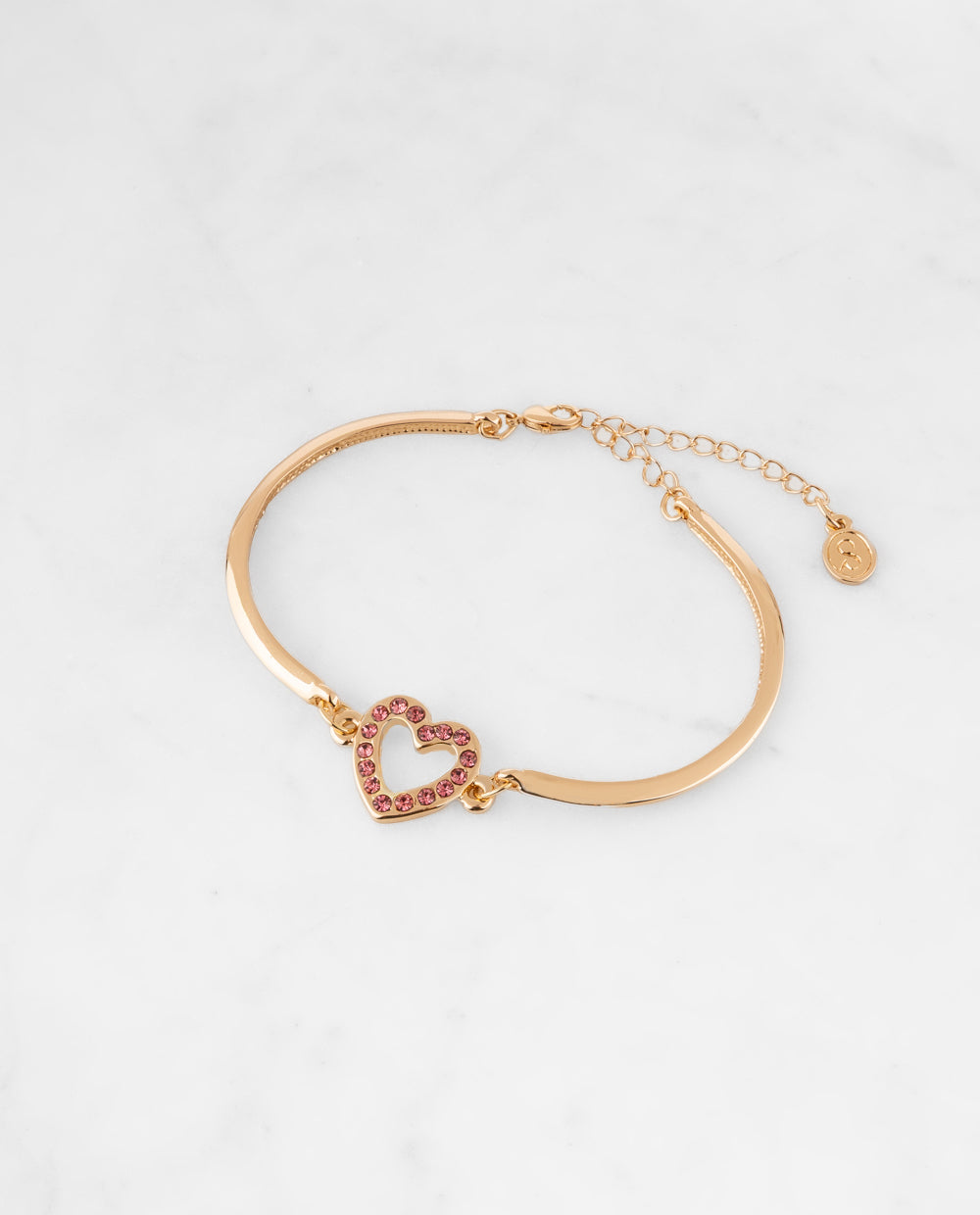 Pulsera dorada bañada en oro con dije de corazón incrustado con cristales. Ajustable e hipoalergénica de la colección premium, ideal para pieles sensibles.