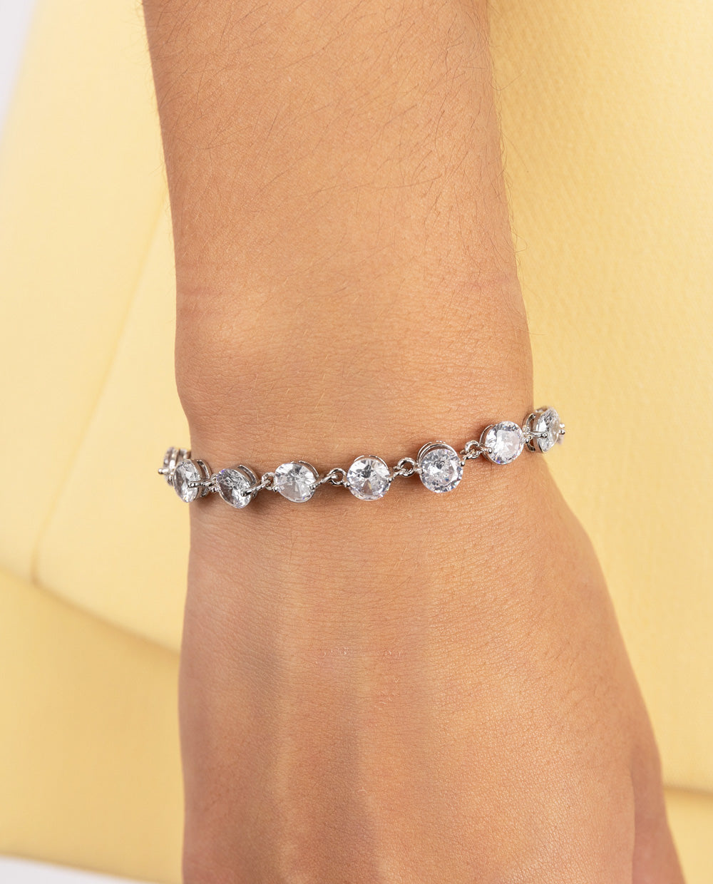 Pulsera plateada con pedrería de zircón