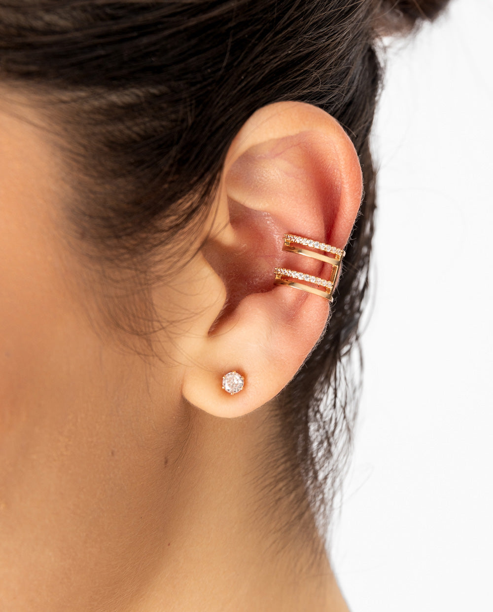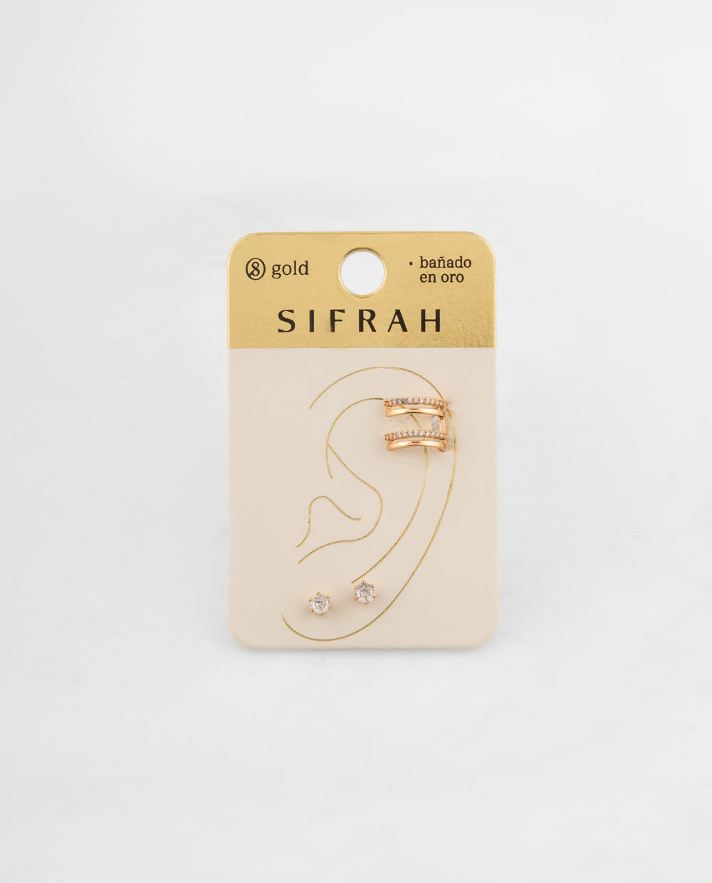Set de aretes ear cuff y stud de zircón