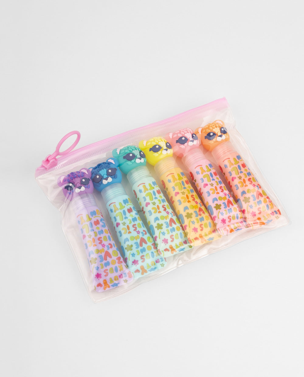 Este set incluye 6 envases reutilizables ideales para llevar gel, crema o desinfectante en presentaciones divertidas. Cada envase tiene tapa en forma de animalito y diseño colorido, perfectos para mochilas escolares o salidas. Viene con un práctico estuche transparente con cierre, ideal para mantener todo ordenado y listo para llevar.