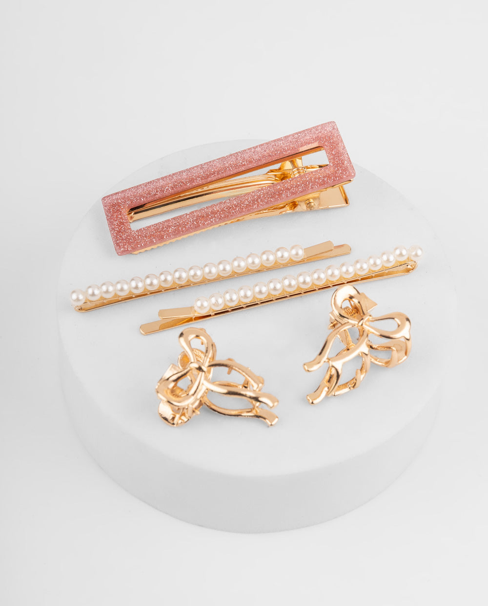 Este set de ganchos es ideal para transformar cualquier peinado en segundos. Incluye diseños con perlas, glitter y figuras tipo lazo en acabado dorado que combinan elegancia y un toque de dulzura. Perfectas para sujetar mechones laterales, dar un detalle especial a una trenza o elevar un recogido casual. Diseñadas para acompañarte en momentos cotidianos o en ocasiones especiales.