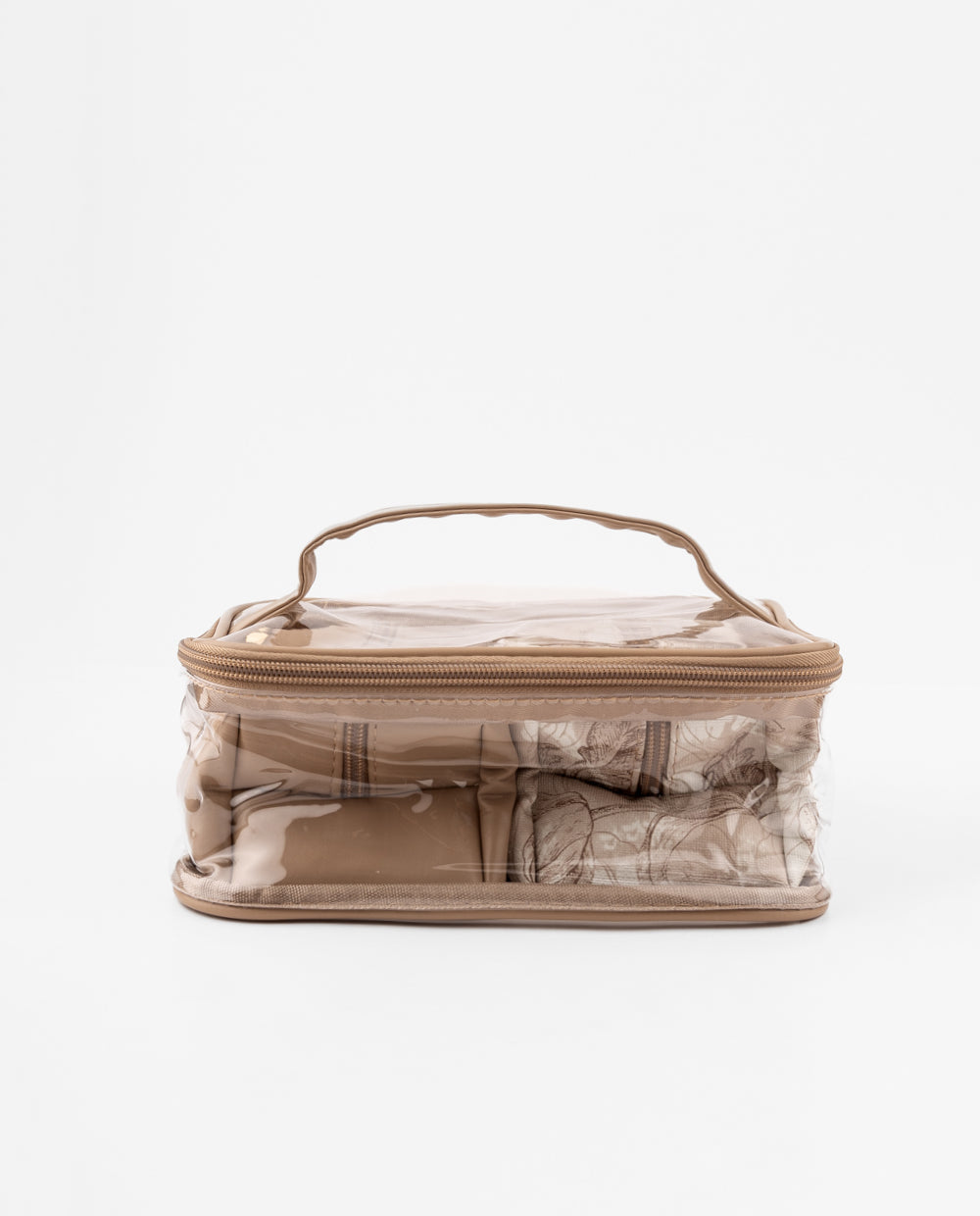 Este set de neceseres incluye un práctico estuche transparente con asa y dos neceseres en tonos beige, uno con diseño floral y otro liso. Perfectos para organizar maquillaje, accesorios o artículos de viaje, combinan elegancia y funcionalidad en un solo conjunto. Su diseño compacto y con cierre resistente los convierte en el aliado ideal para acompañarte en tu día a día o en tus viajes.