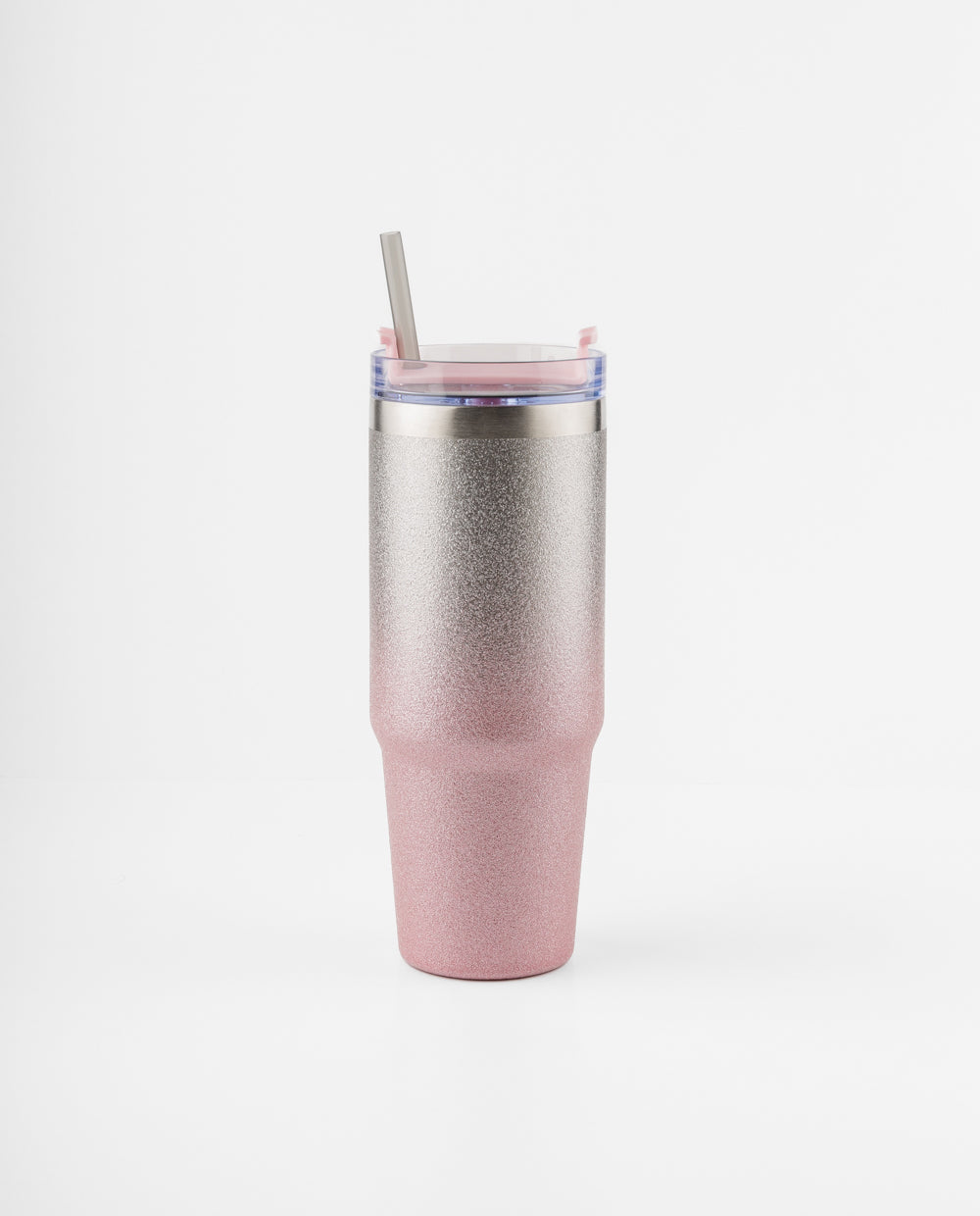 Este tomatodo metálico combina estilo y practicidad con un diseño en acabado glitter degradado rosa y plateado. Su estructura de acero inoxidable mantiene tus bebidas frías o calientes por más tiempo, mientras que su tapa hermética y la bombilla reutilizable lo hacen perfecto para usar en la oficina, la universidad o en tus salidas diarias. Un accesorio funcional que también refleja tu estilo en cada sorbo.