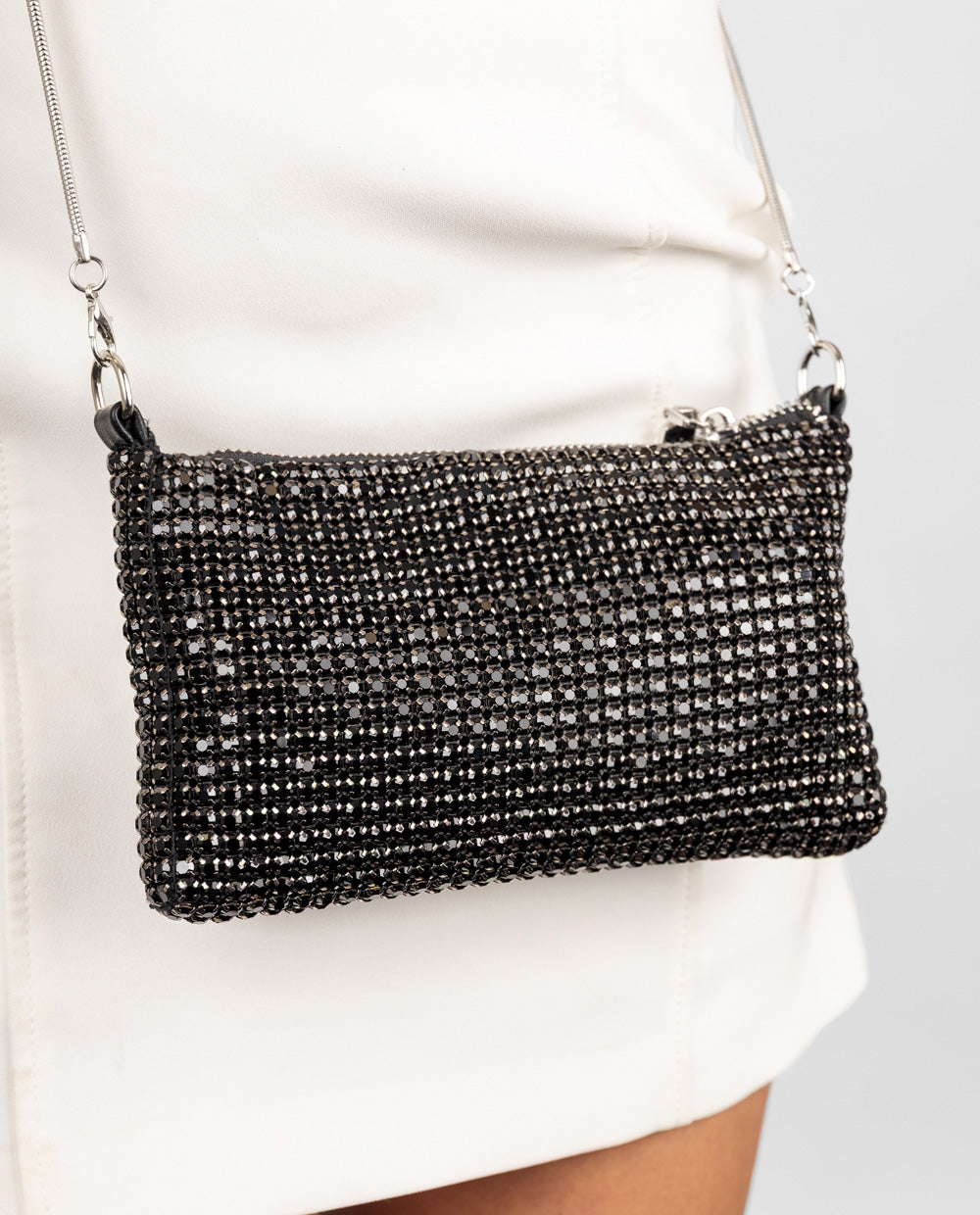 ¡Esta vanité lo tiene todo! Con brillos que roban miradas y una cadena plateada para llevarla como crossbody, es tu aliada perfecta para brillar en cada fiesta. De la colección Glow, ideal para noches especiales donde tu luz no puede pasar desapercibida. #Brilla247 con Sifrah.