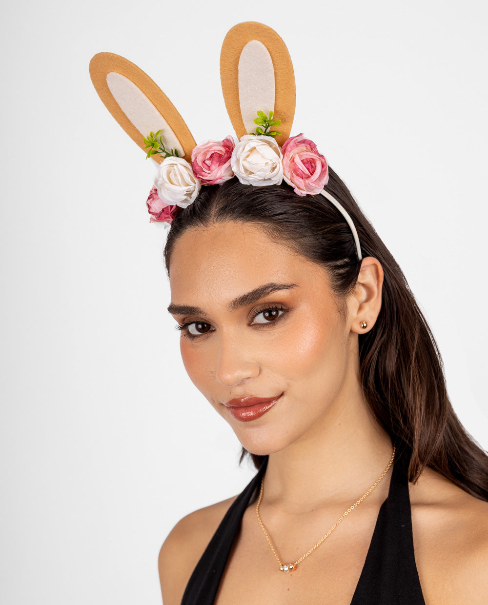 Una vincha divertida y encantadora con orejitas de conejito y flores en tonos delicados, perfecta para darle un aire tierno y festivo a tu look. Ideal para disfraces, celebraciones o para crear un estilo único en ocasiones especiales.