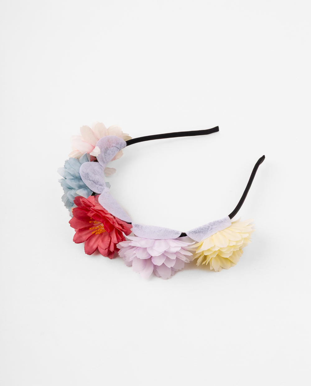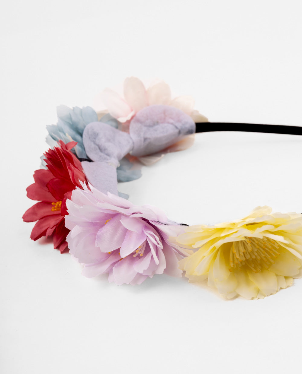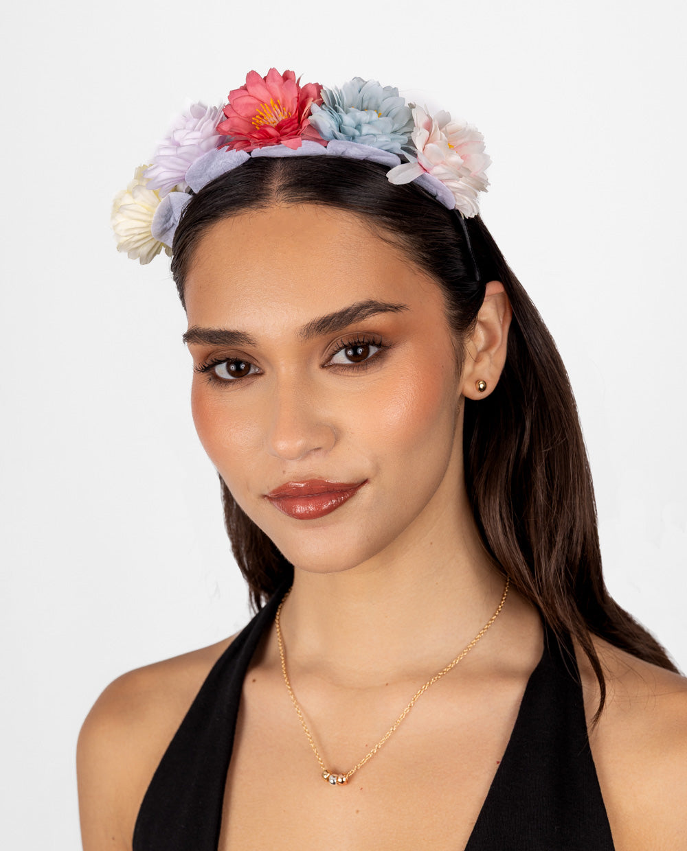 Vincha decorada con flores de colores vibrantes en tonos rojo, lila, amarillo y celeste. Su diseño llamativo la convierte en el accesorio ideal para disfraces, presentaciones o celebraciones temáticas. Aporta un toque alegre y divertido a cualquier look.